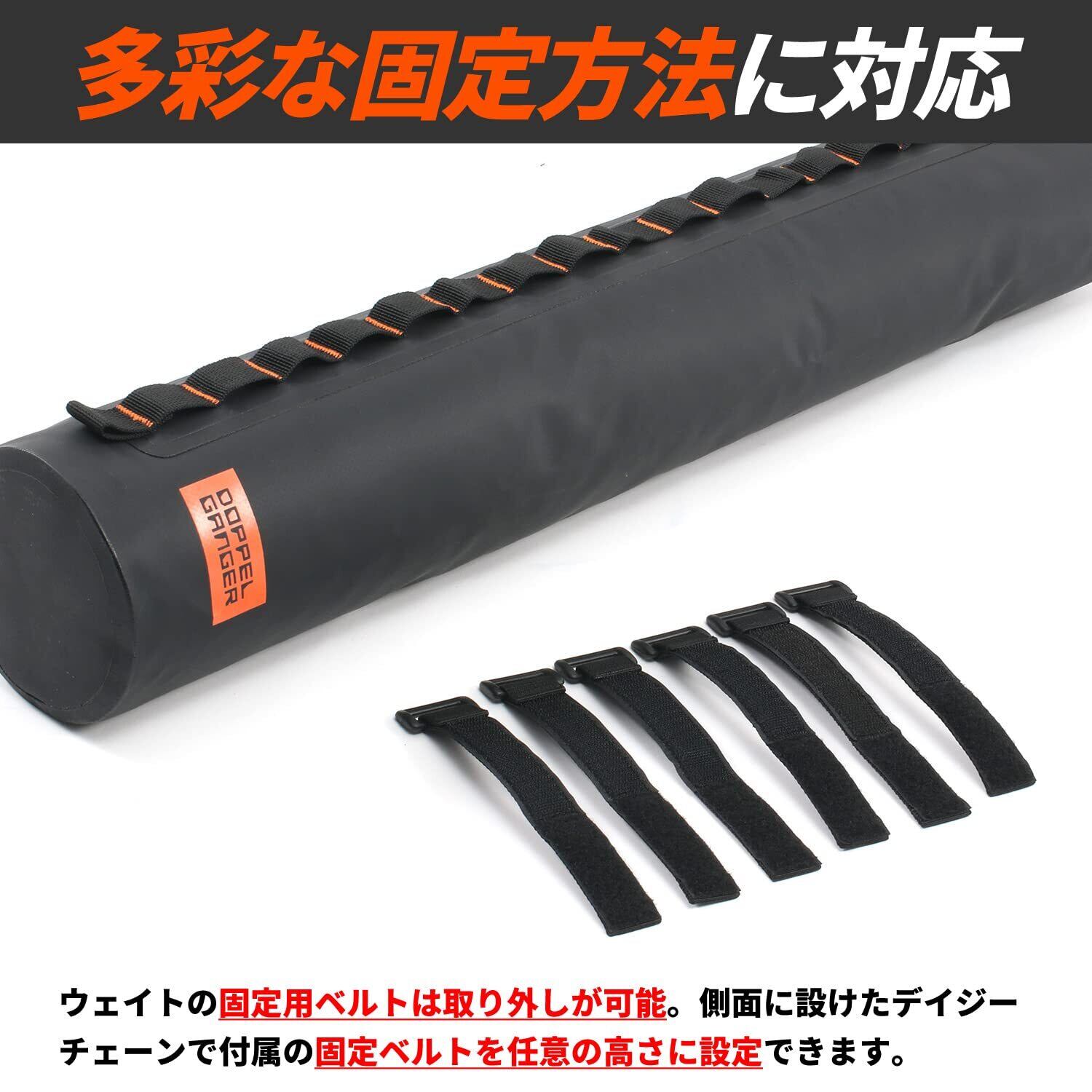 【2022最新】ドッペルギャンガー スリムサンドウェイト【バイクガレージ専用のサンド(砂)の錘】 2本セット 固定用ベルト、内袋付属 最大充填重量(1個あたり) 約13Kg DCC623-BK ブラック 直径12×H70 cm