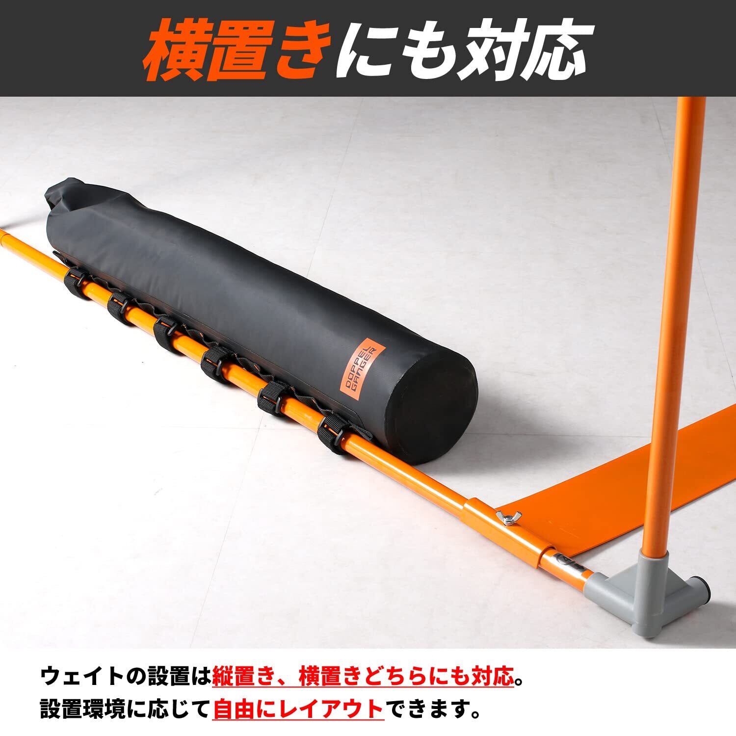 ドッペルギャンガー スリムサンドウェイト【バイクガレージ専用のサンド(砂)の錘】 2本セット 固定用ベルト、内袋付属 最大充填重量(1個あたり) 約13Kg DCC623-BK ブラック 直径12×H70 cm