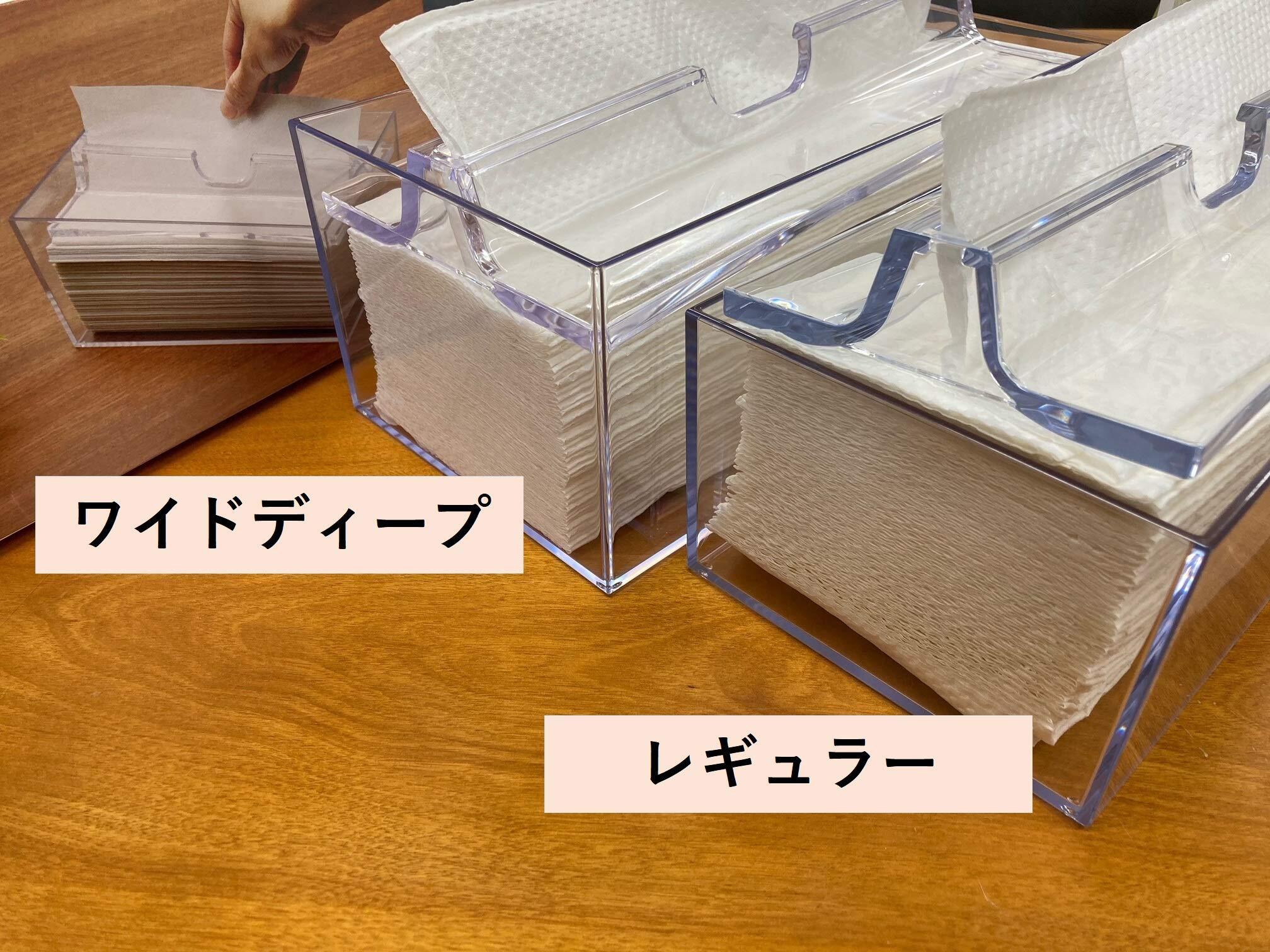 『ワイドディープ ペーパータオルケース』はその名の通り、幅が広く、深さのある、中判用ペーパータオルケースです。