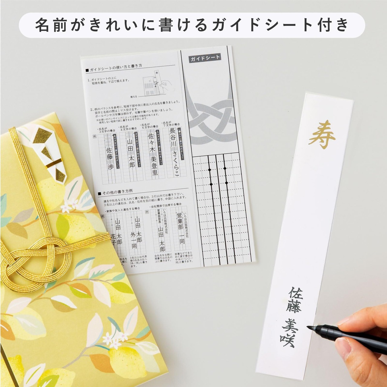 【セット内容】・本体 ×1・中袋 ×1・短冊 ×3(寿/御祝/無地)・短冊用の両面テープ