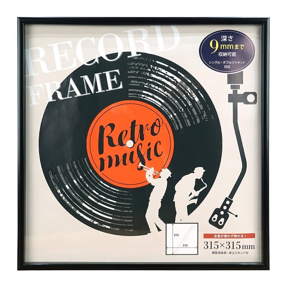 万丈 VANJOH レコード全面飾れるフレーム ブラック スタンド付 106732