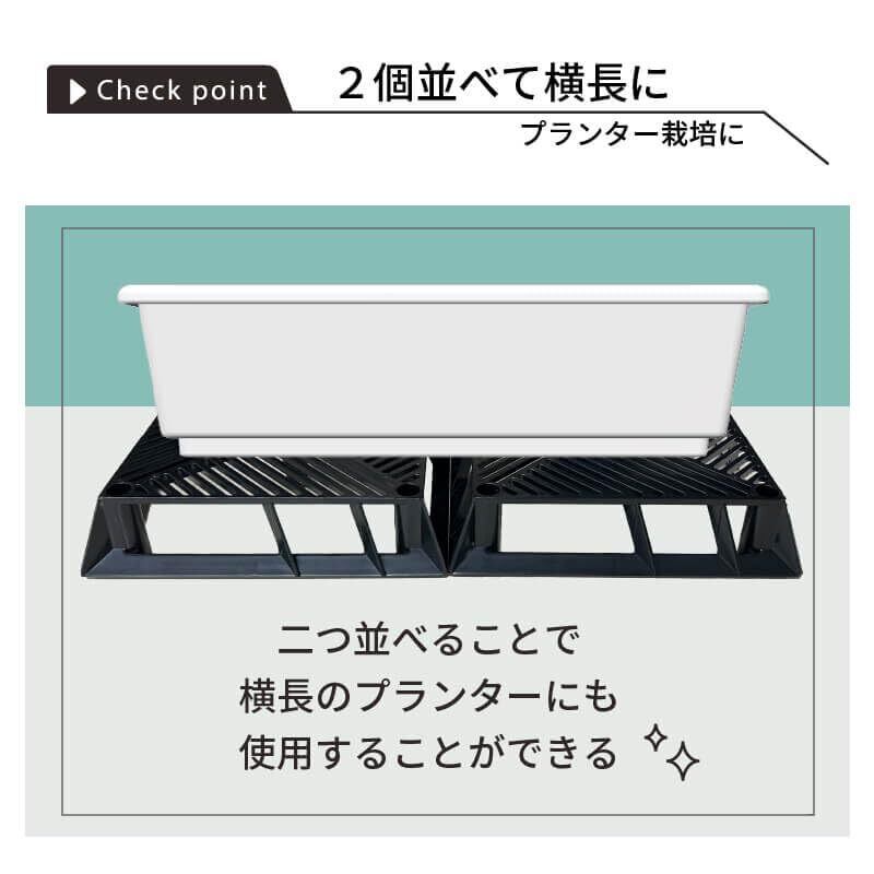 ■【特徴】ブラックベースはスタイリッシュでおしゃれなデザインの鉢スタンドです。通気性が良く、植物の根腐れを防ぎます!四隅に支柱を設置可能!つる性植物などの生育を手助けします!2個ならべればプランターでもお使いいただけます。