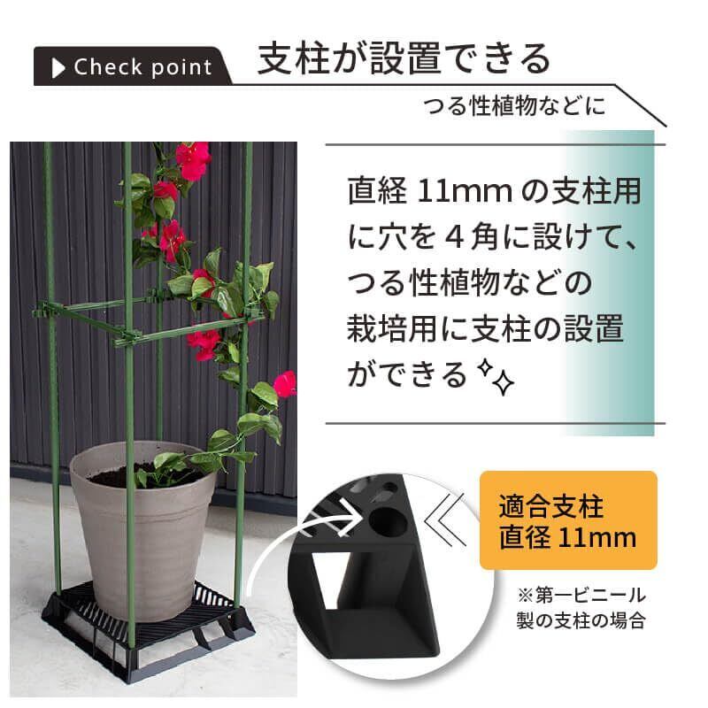 ■【特徴】ブラックベースはスタイリッシュでおしゃれなデザインの鉢スタンドです。通気性が良く、植物の根腐れを防ぎます!四隅に支柱を設置可能!つる性植物な