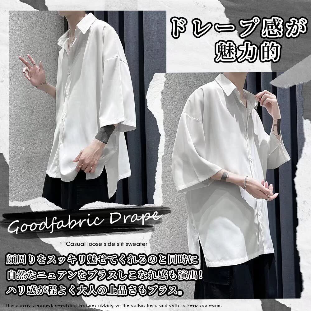 【新着商品】[YIMANIE] シャツ メンズ 韓国 半袖 七分袖 シャツ ファッション 柄 無地 大きいサイズ カジュアルシャツ 春 秋 軽い 柔らかい ゆったり オーバーサイズ ビッグシルエット | nico3588