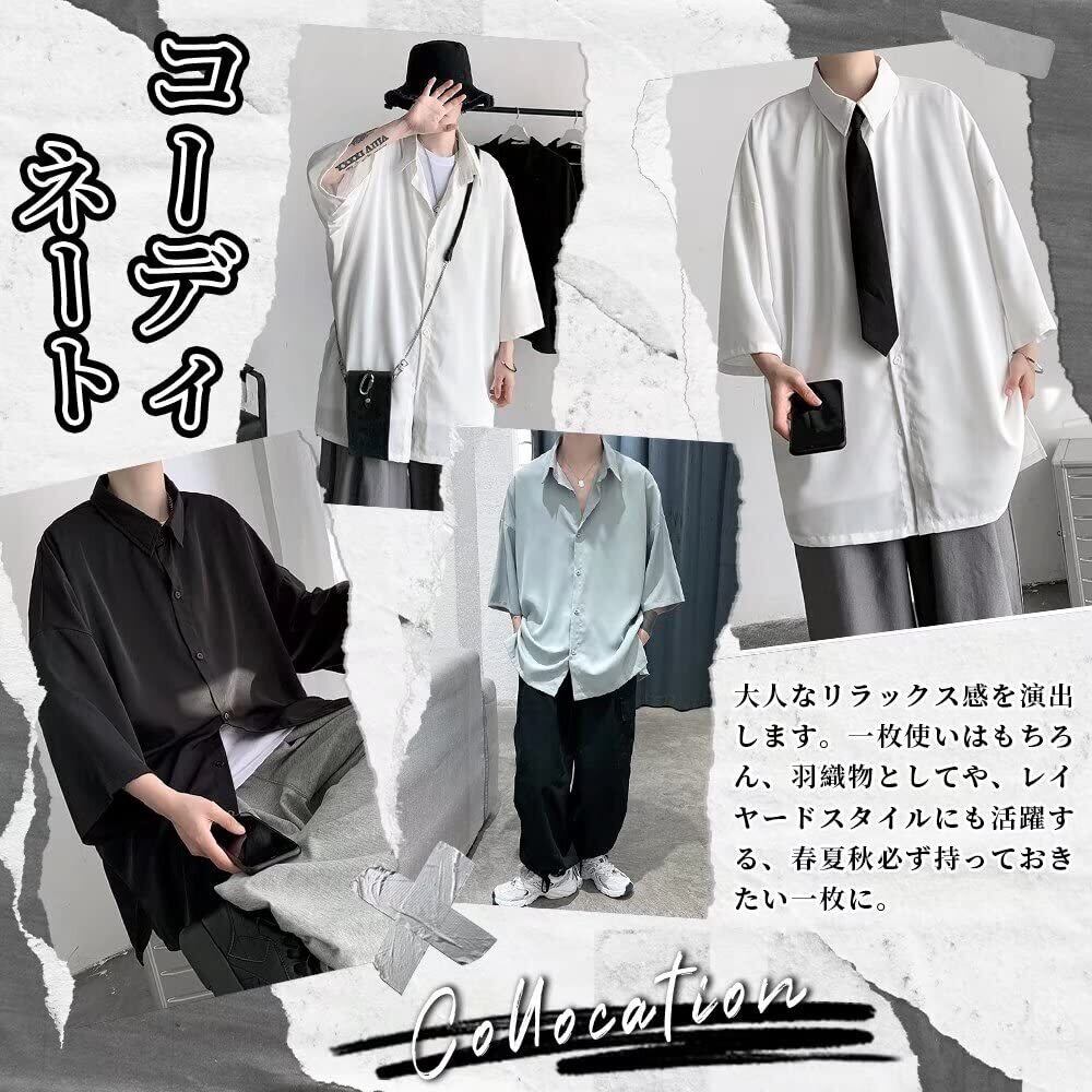 [YIMANIE] シャツ メンズ 韓国 半袖 七分袖 シャツ ファッション 柄 無地 大きいサイズ カジュアルシャツ 春 秋 軽い 柔らかい ゆったり オーバーサイズ ビッグシルエット