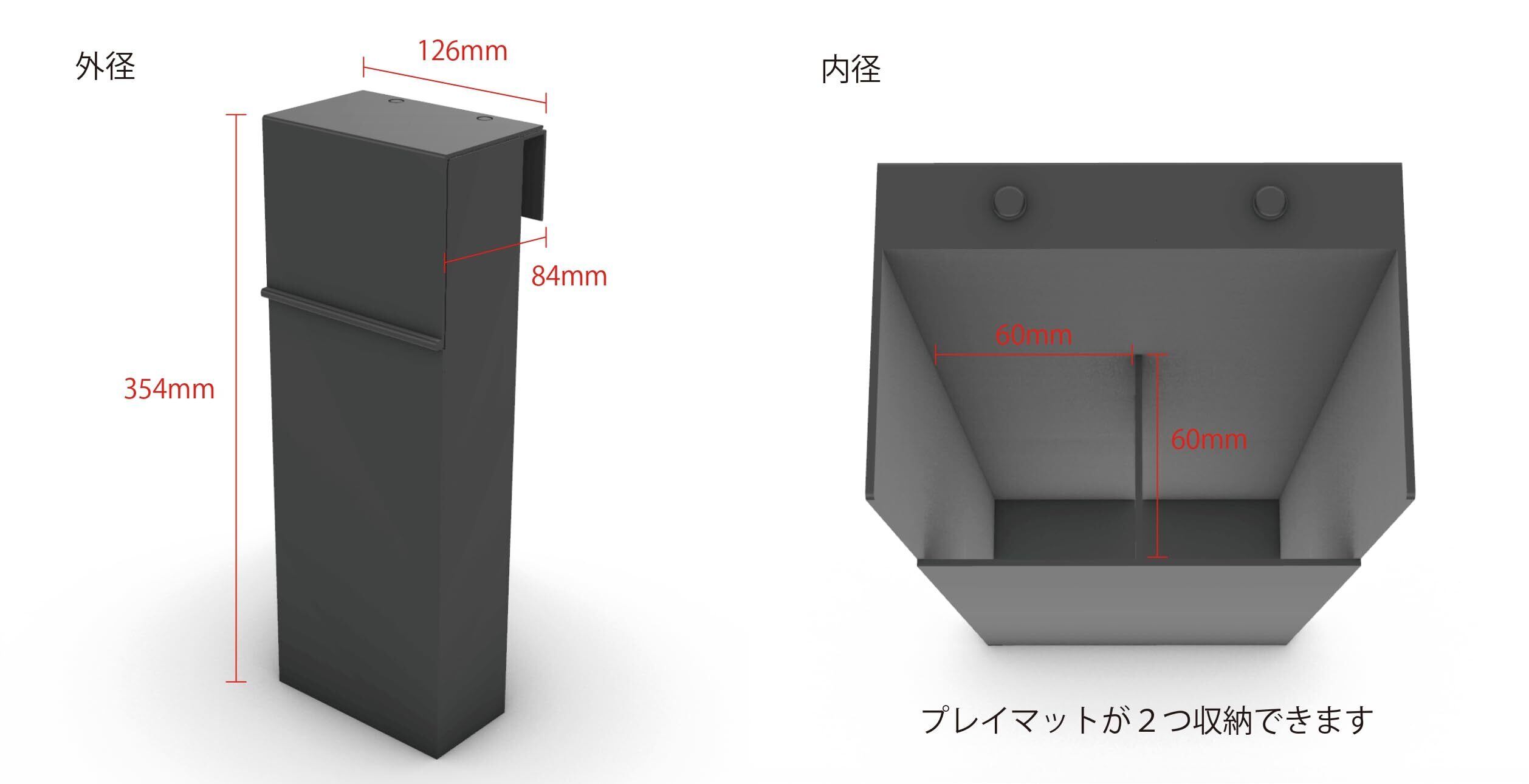 TCG Castle 対応 TCG Castle を折りたたんだ状態、プレイマット収納を付け加えることができるオプション。