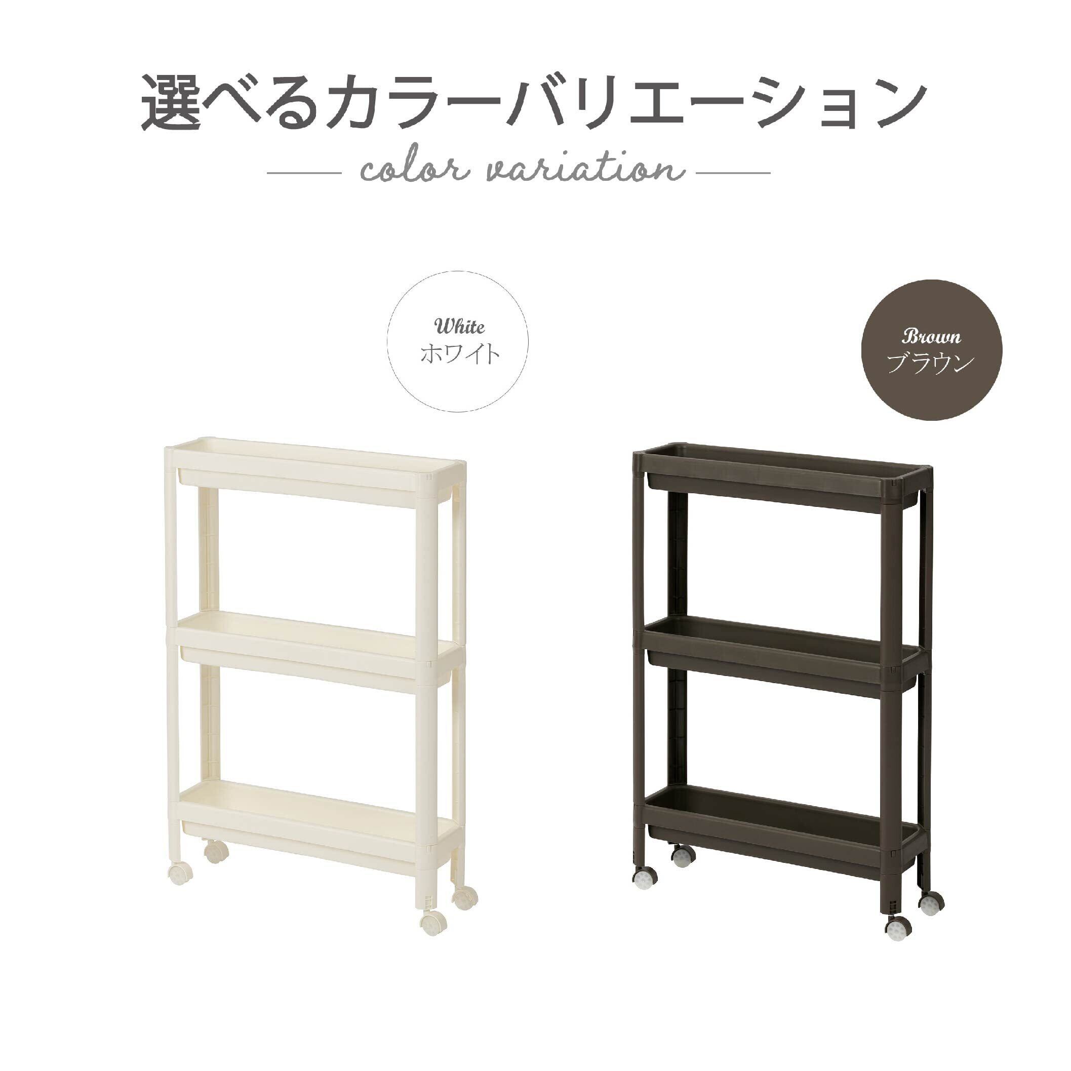 武田コーポレーション【ワゴン・キャスター付きワゴン・収納棚】ブラウン 約50×15×74cm スリムワゴン3段ブラウン 81365BR