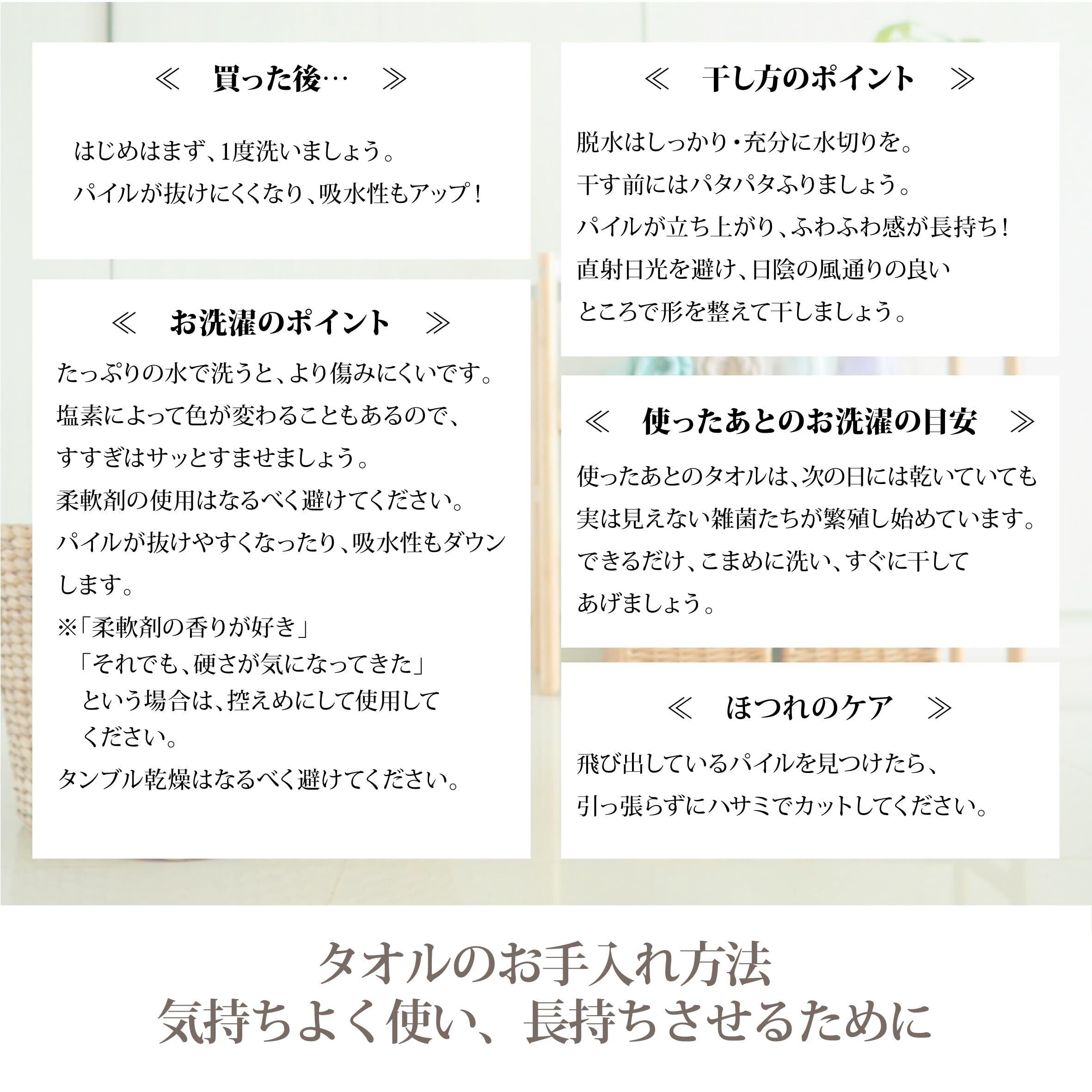 ◆ご家庭でお洗濯できます。毛羽抜けやパイル抜けの原因になりますので、初めのうちは柔軟剤の使用をお避け下さい。