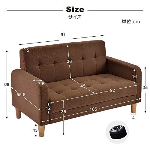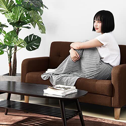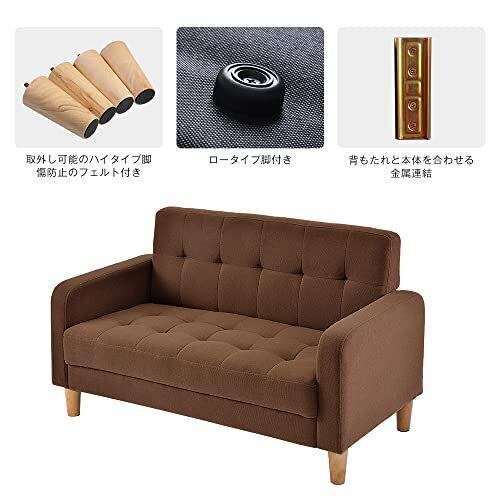 オーエスジェイ(OSJ) ソファー 2人掛け 肘付き 天然木脚 幅約110cm 簡単組み立て 2WAY ファブリック おしゃれ 新生活 北欧スタイル ソファベッド ブラウン 62*113*38