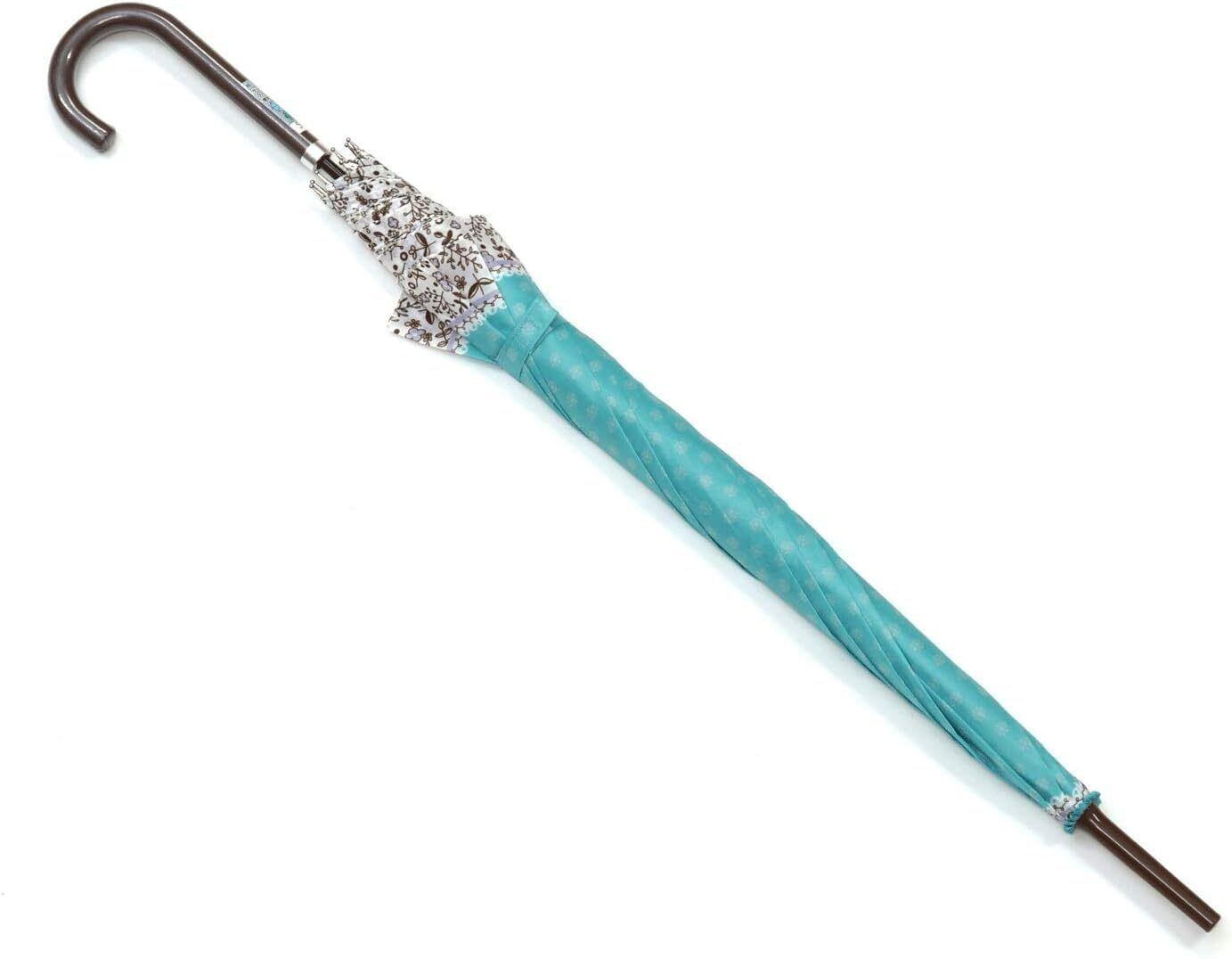 【特価商品】ベーシックスタンダード 長傘 レディース かわいい デザイン おしゃれ レザー ハンドル 58cm ワンタッチ ジャンプ傘 丈夫 耐風 グラスファイバー骨 ドット & 縁 レース 花柄 サックス | nico3588