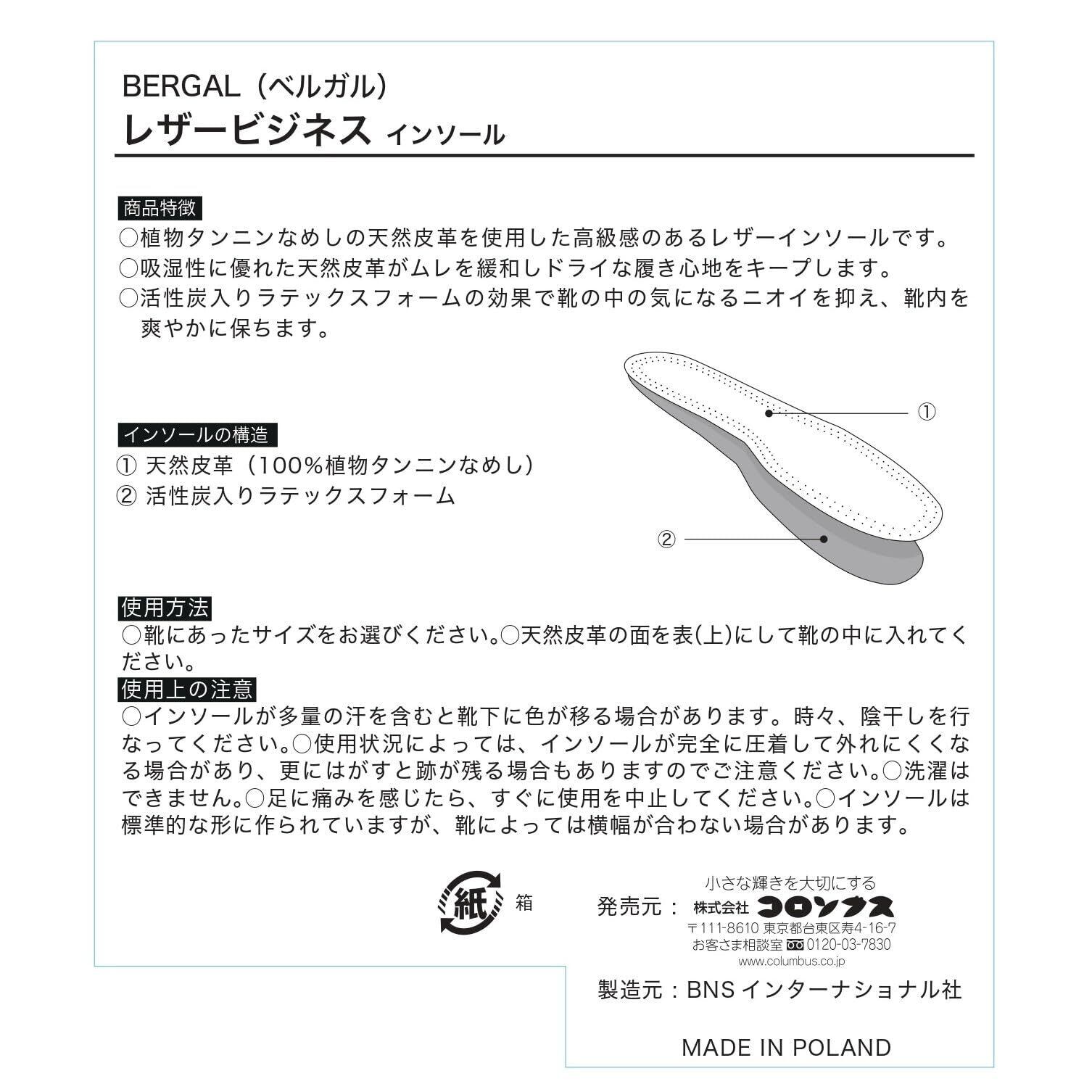 [コロンブス] 足によく馴染み 吸湿性の高い天然皮革 活性炭入り BERGAL レザービジネス インソール 消臭 ニオイ対策 サイズ調整