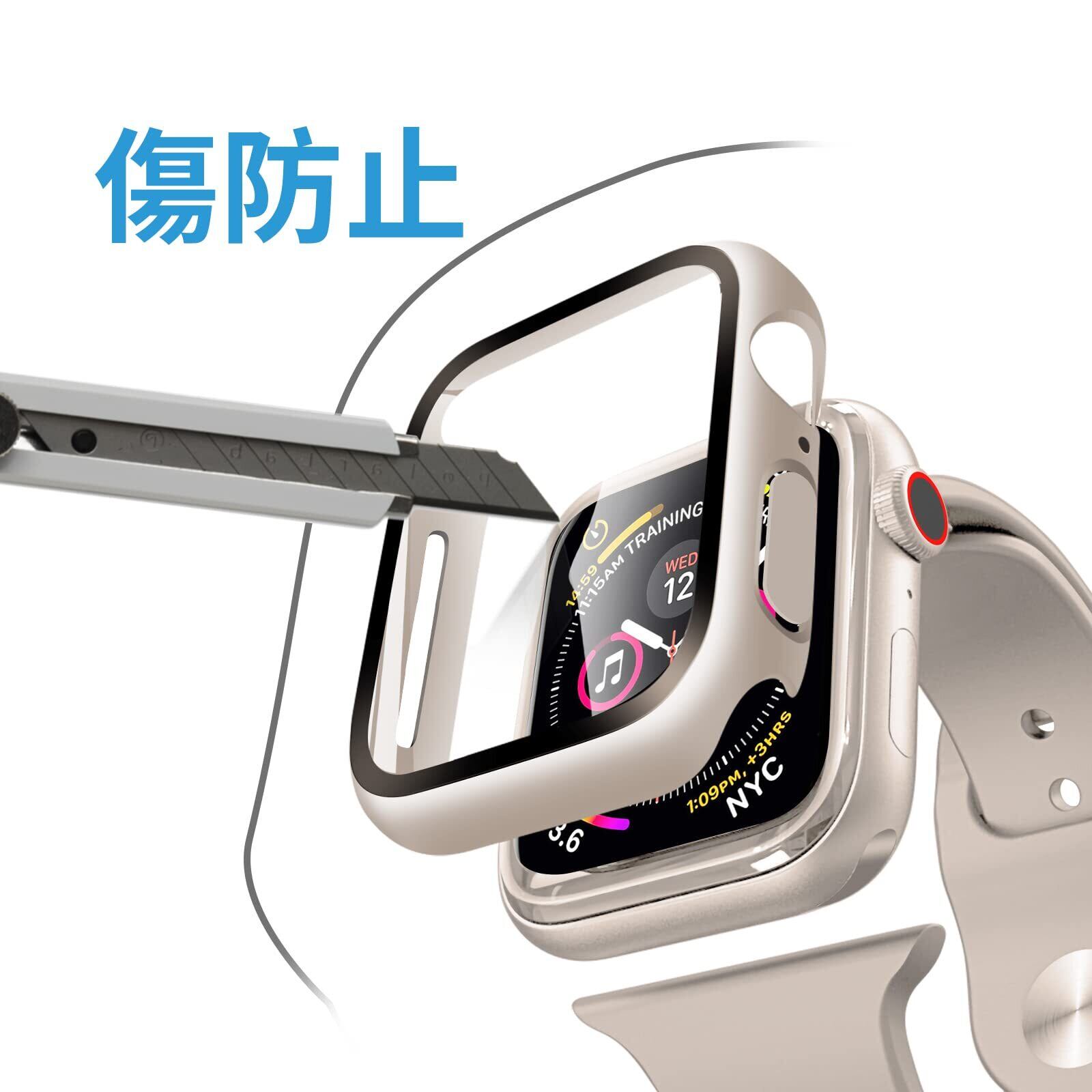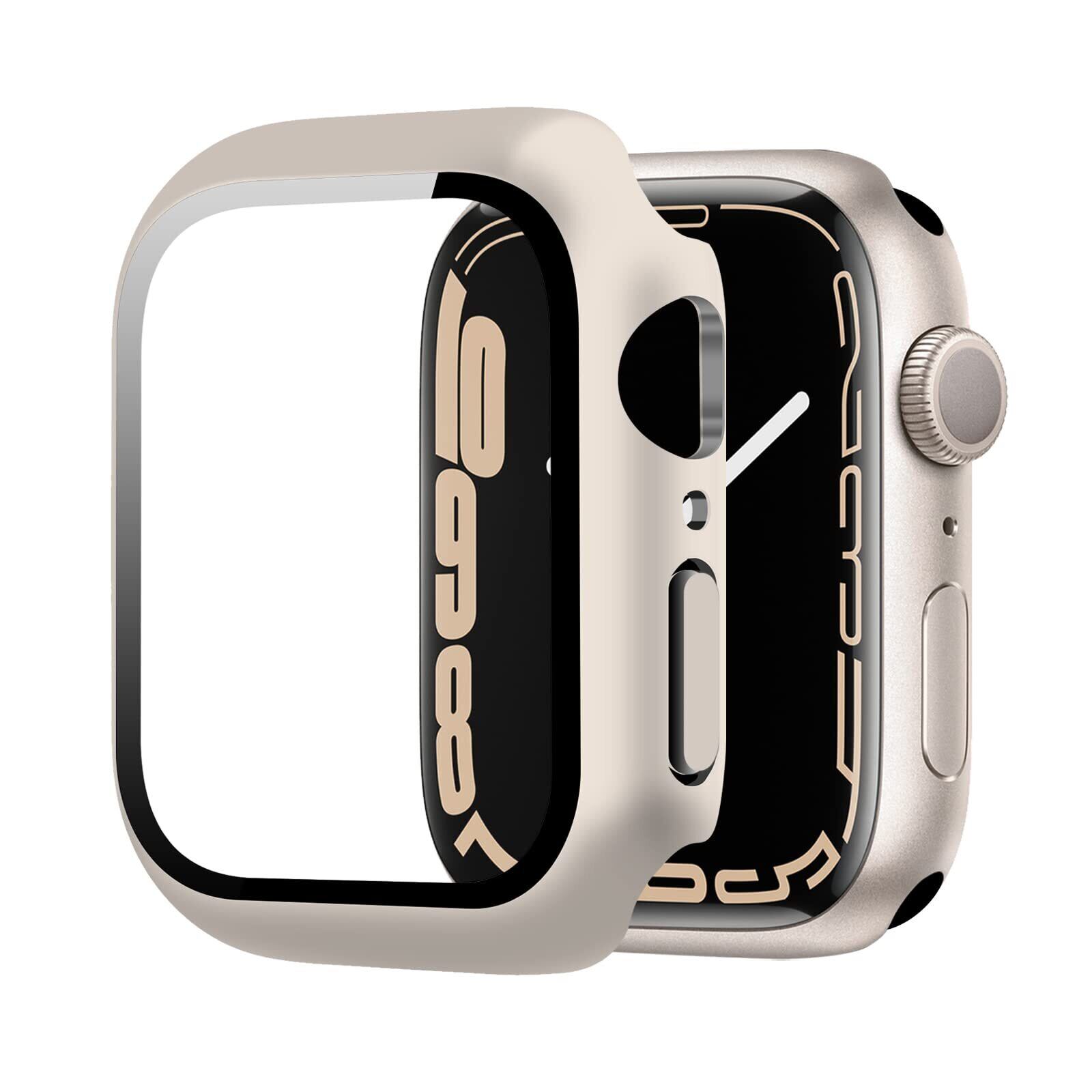 YOFITAR Apple Watch 用 ケース series9/8/7 41mm アップルウォッチ保護41mm カバー 「2023 モデル」ガラスフィルム 一体型 PC素材 全面保護 超薄型 装着簡単 耐衝撃 高透過率 指紋防止 傷防止 (41mm スターライト)