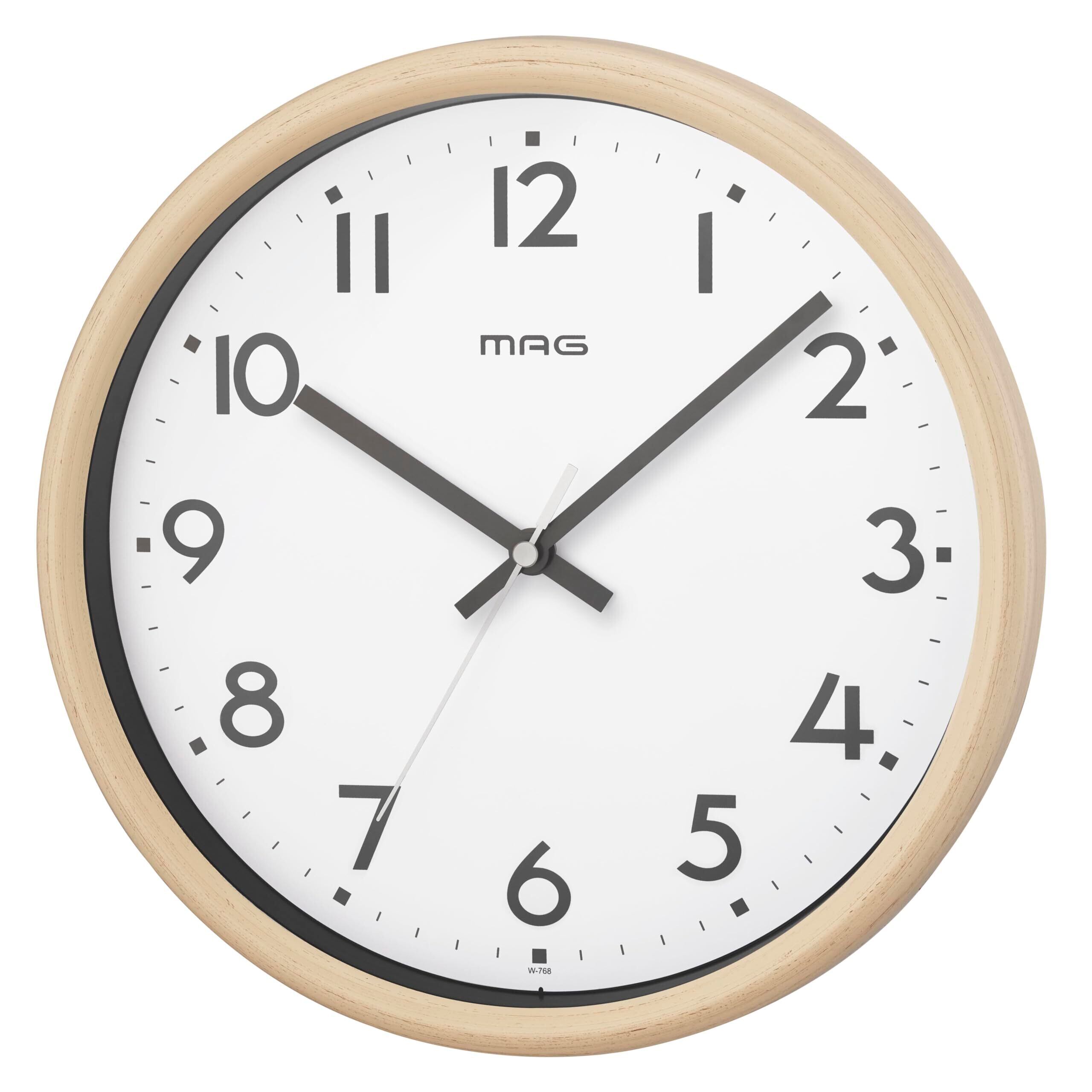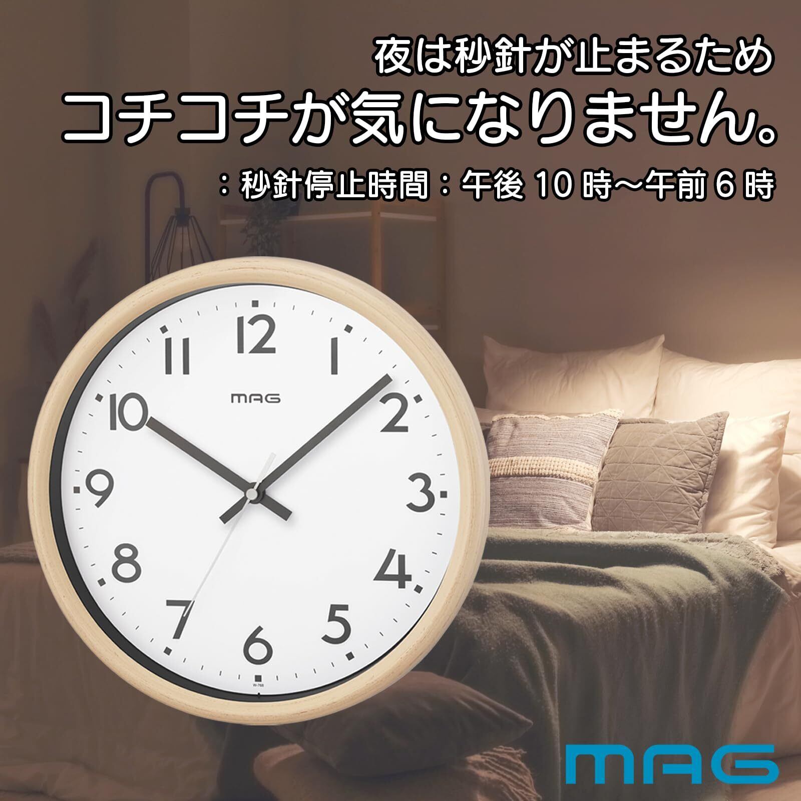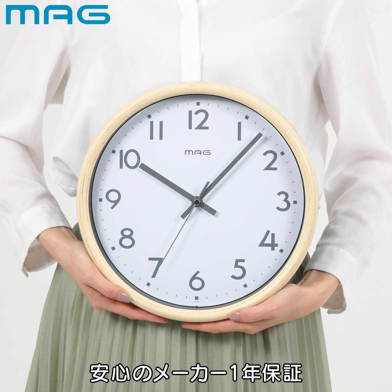 MAG(マグ) 掛け時計 壁掛け時計 電波時計 アナログ かわいい おしゃれ シンプル インテリア 北欧 木目調 ウッディ 直径27.8㎝ 夜間秒針停止 ナチュラル アイボリー トルテ W-768A IV-Z ノア精密