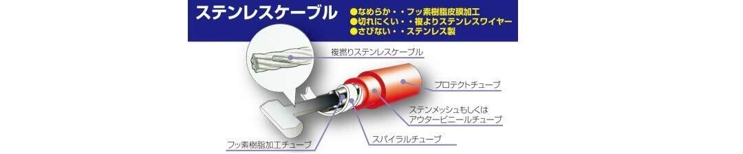 ステンレスケーブルはインナーケーブル高密度の複撚り(7×7=49本)に仕上げ、高張力加工、表面特殊加工を施した為、表面の凹凸が少なく、テフロンチューブ内蔵により、摩擦を減少させ、非常に滑らかなクラッチ、スロットルワークを実現しています。