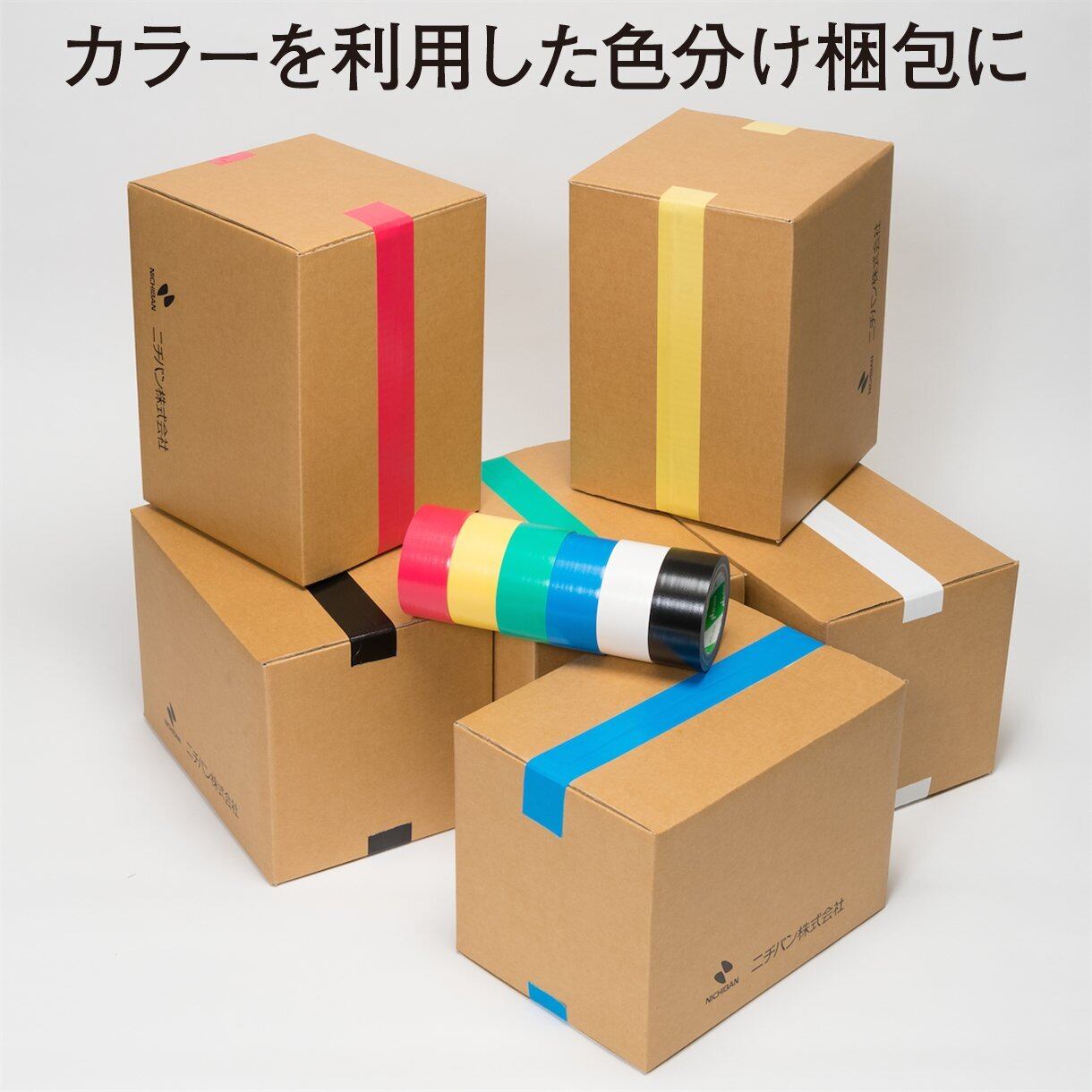 一般包装用黄土の他、6色が揃い、識別に便利。