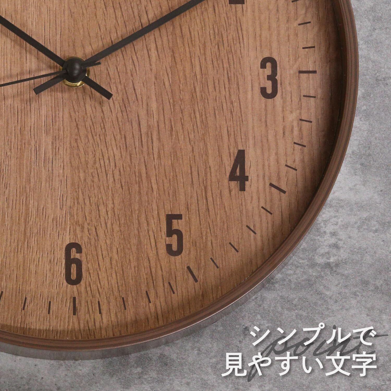不二貿易 掛時計 ライフ 直径25cm 幅25×奥行4×高さ25cm ブラウン 木目調 シンプル 静音 39870