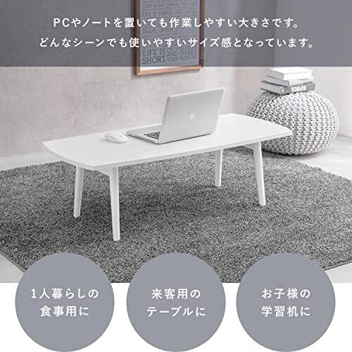【新春セール】萩原(Hagihara) ローテーブル テーブル 長方形 折りたたみ 【天然木 タモ材使用】 ホワイト 完成品 幅110 奥行48 高さ35 MT-6423WS