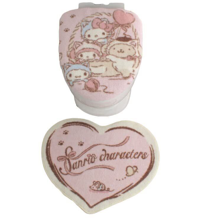 サンリオの人気キャラクターのトイレ2点セット。マットの裏面は滑り止め加工。フタカバーとマットのセットなのでこれ1つでトイレをトータルコーディネート! 洗濯ネットを使用し洗濯機で丸洗いできるのでお手入れ簡単