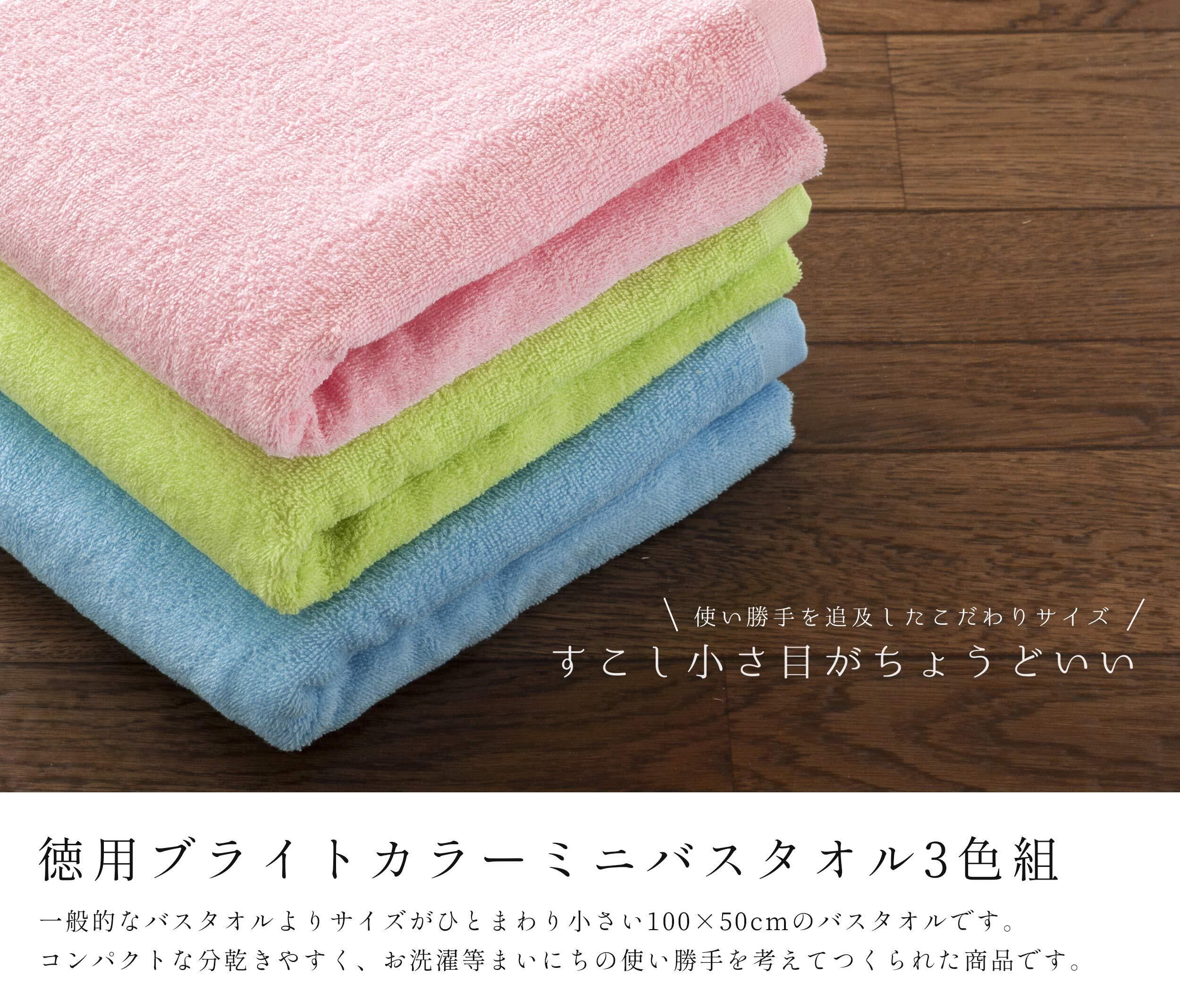 徳用ブライトカラーミニバスタオル3色組