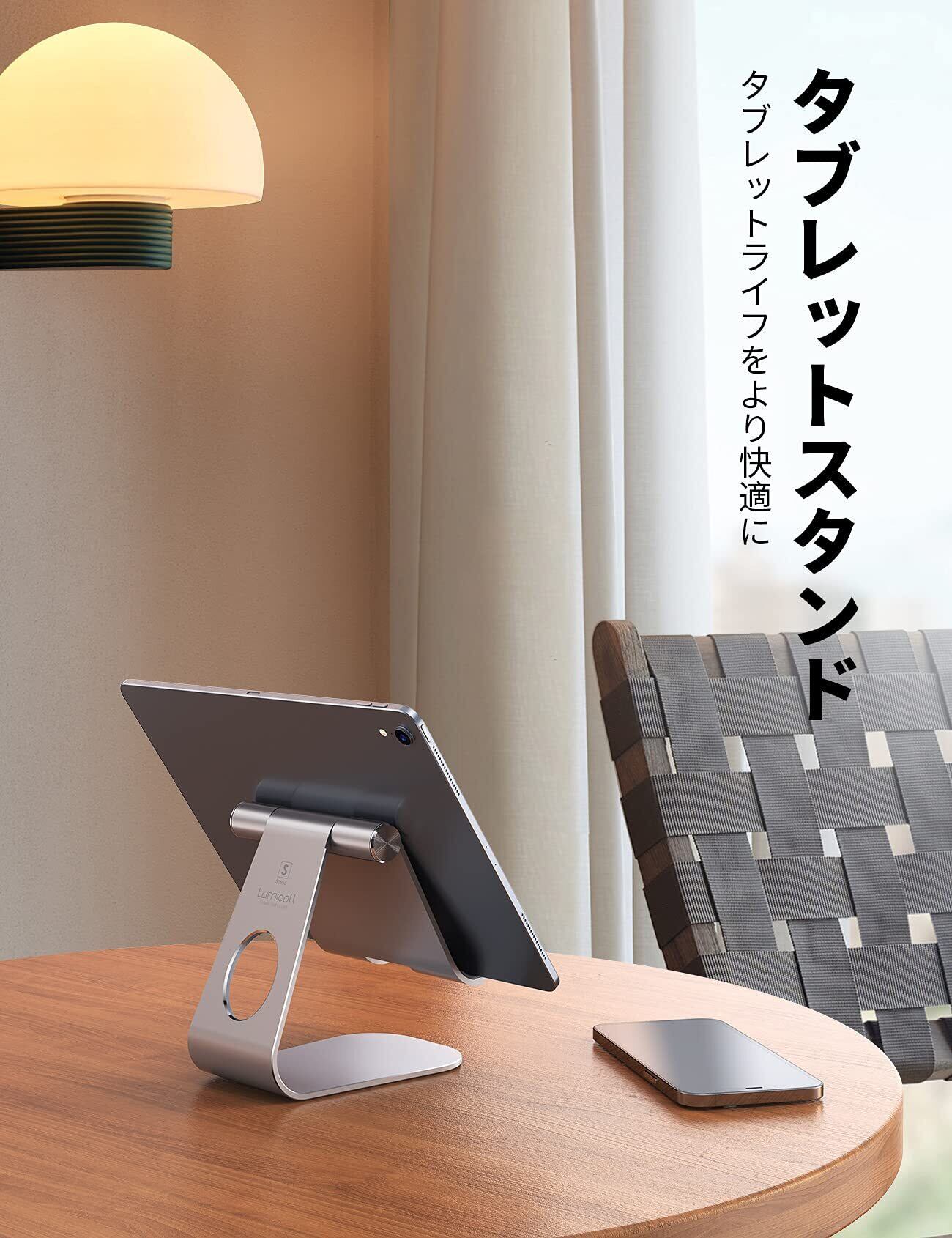 【在庫処分】タブレット スタンド アルミ ホルダー 角度調整可能 Lomicall stand : 卓上 縦置き スタンド タブレット 置き台 デスク台 立てる 設置 aluminium テレワーク 在宅 ワーク Zoom 会議 ミニ エア プロ ipad 10 第十世代 ipad Air mini Pro第六世代 S7 S8 Note (4~13'') 対応 - シルバー