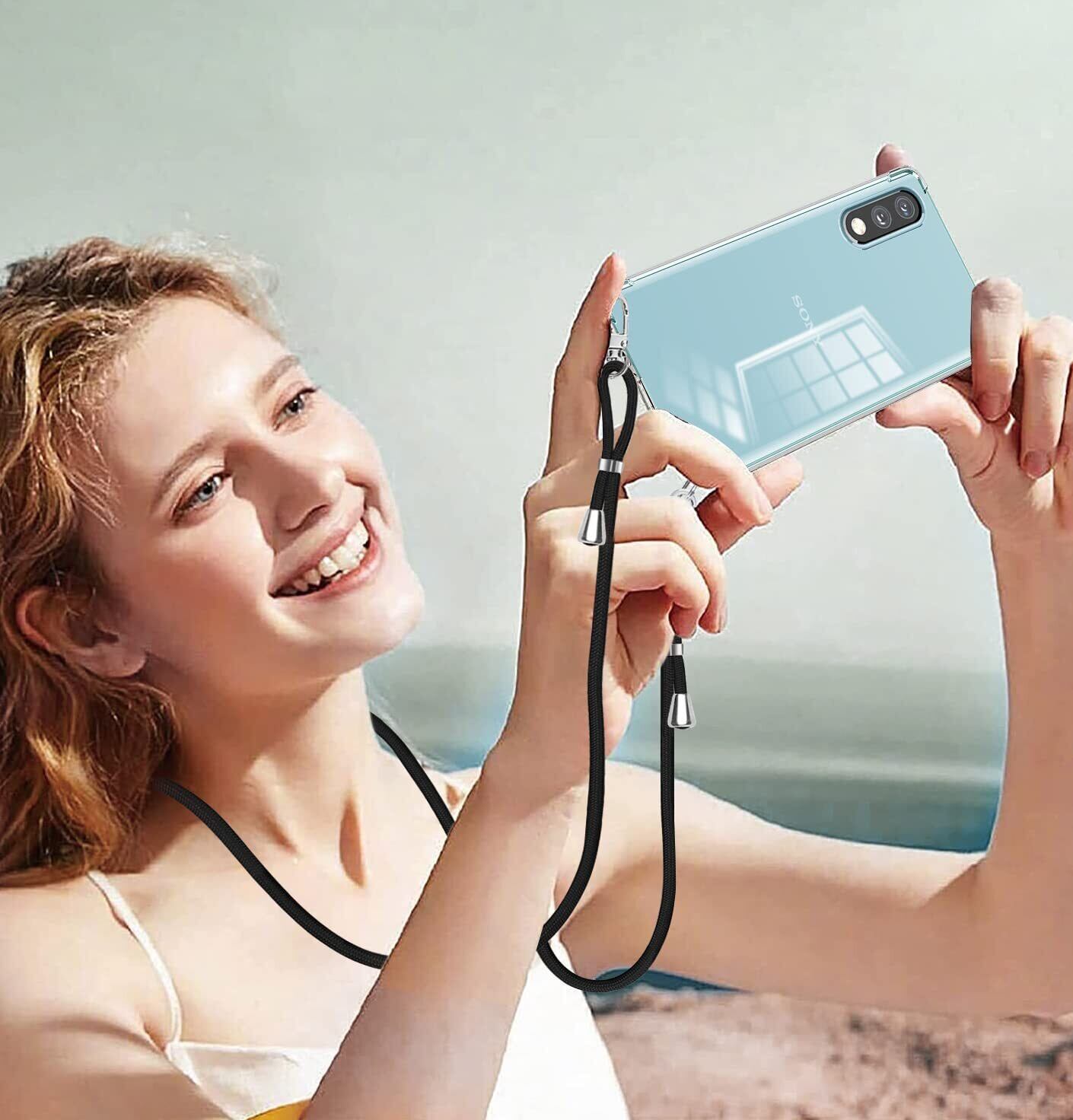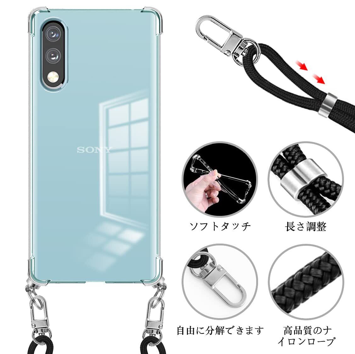 Xperia ACE II ケース ショルダー クリア Xperia ACE II SO-41B スマホケース エクスペリア ace2 カバー ストラップ付き 肩掛け 斜めかけ 縄掛けケース TPU 薄型 軽量 取り外し可能 落下防止 柔軟 【透明】