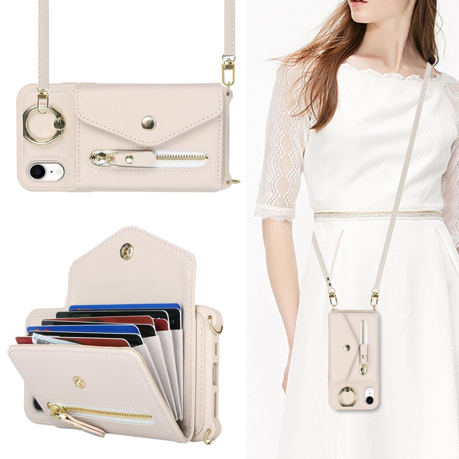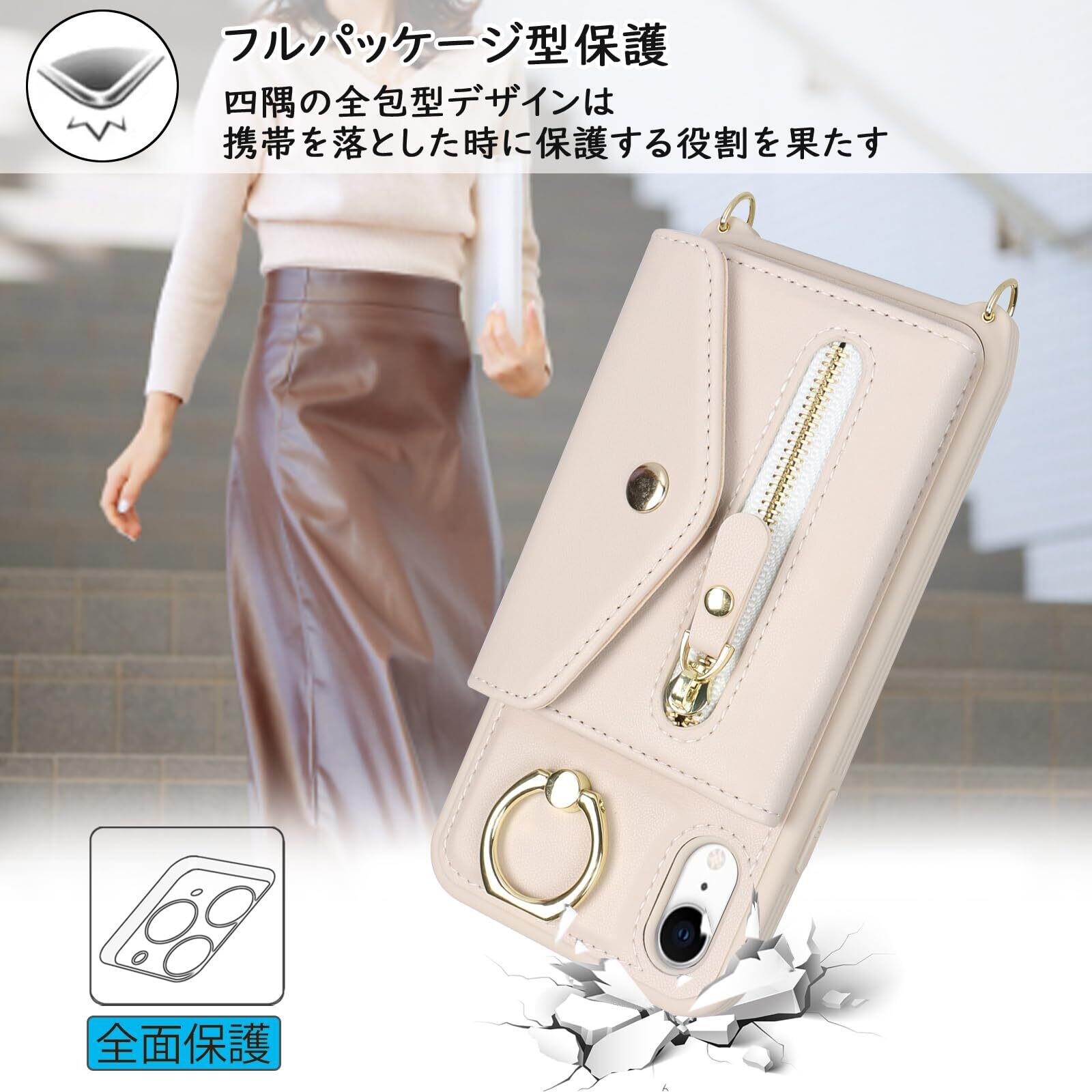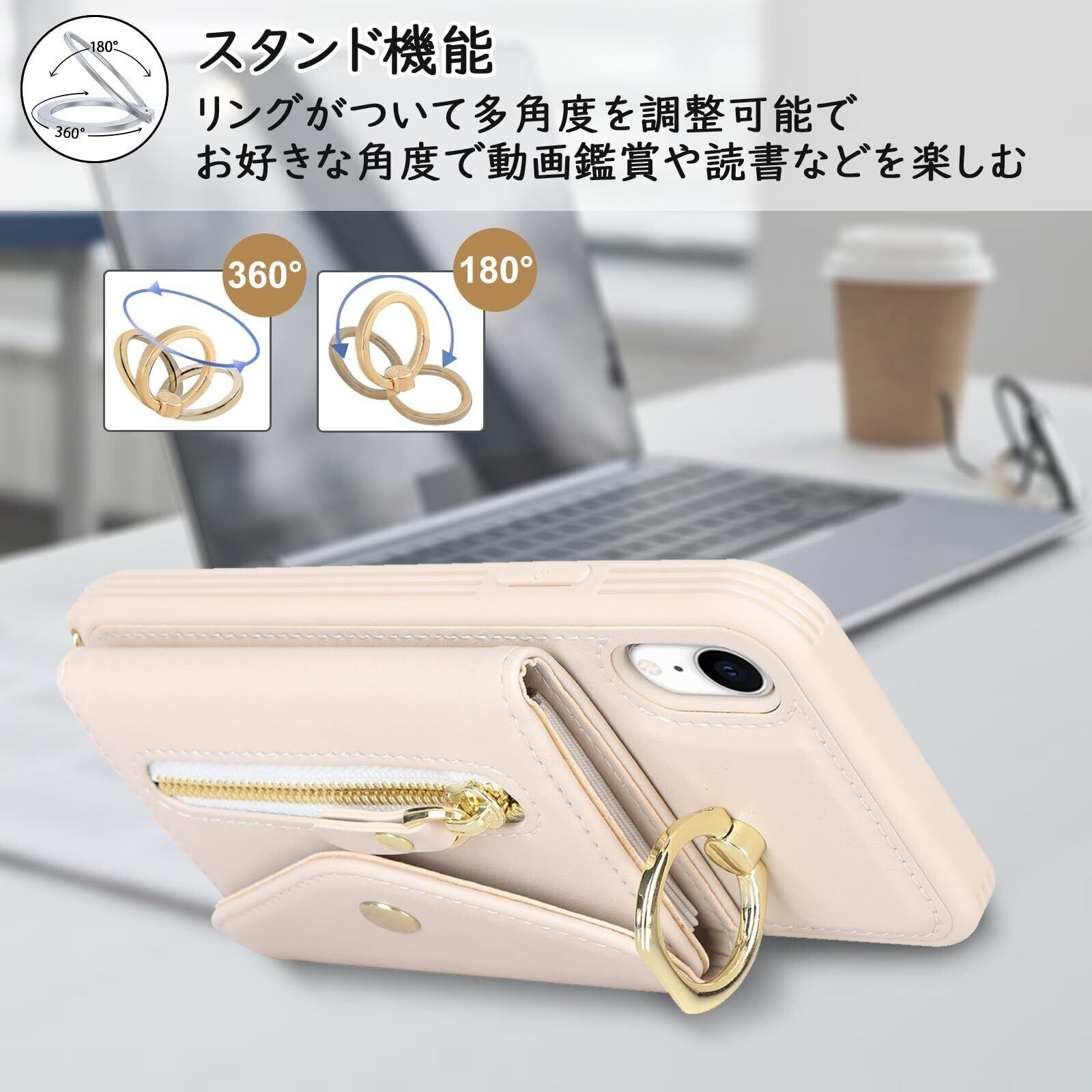 【Hamany】 iphone xr ケース 手帳型 スマホ ショルダー スマホケース iphone xr ショルダー おしゃれ カード収納 大容量 背面 リング付き スタンド機能 アイホンxrケース 耐衝撃 耐久性 女性 肩がけ 首掛け 斜め掛け ストラップ付き 長さ調整可能 カバー -アンバー ホワイト