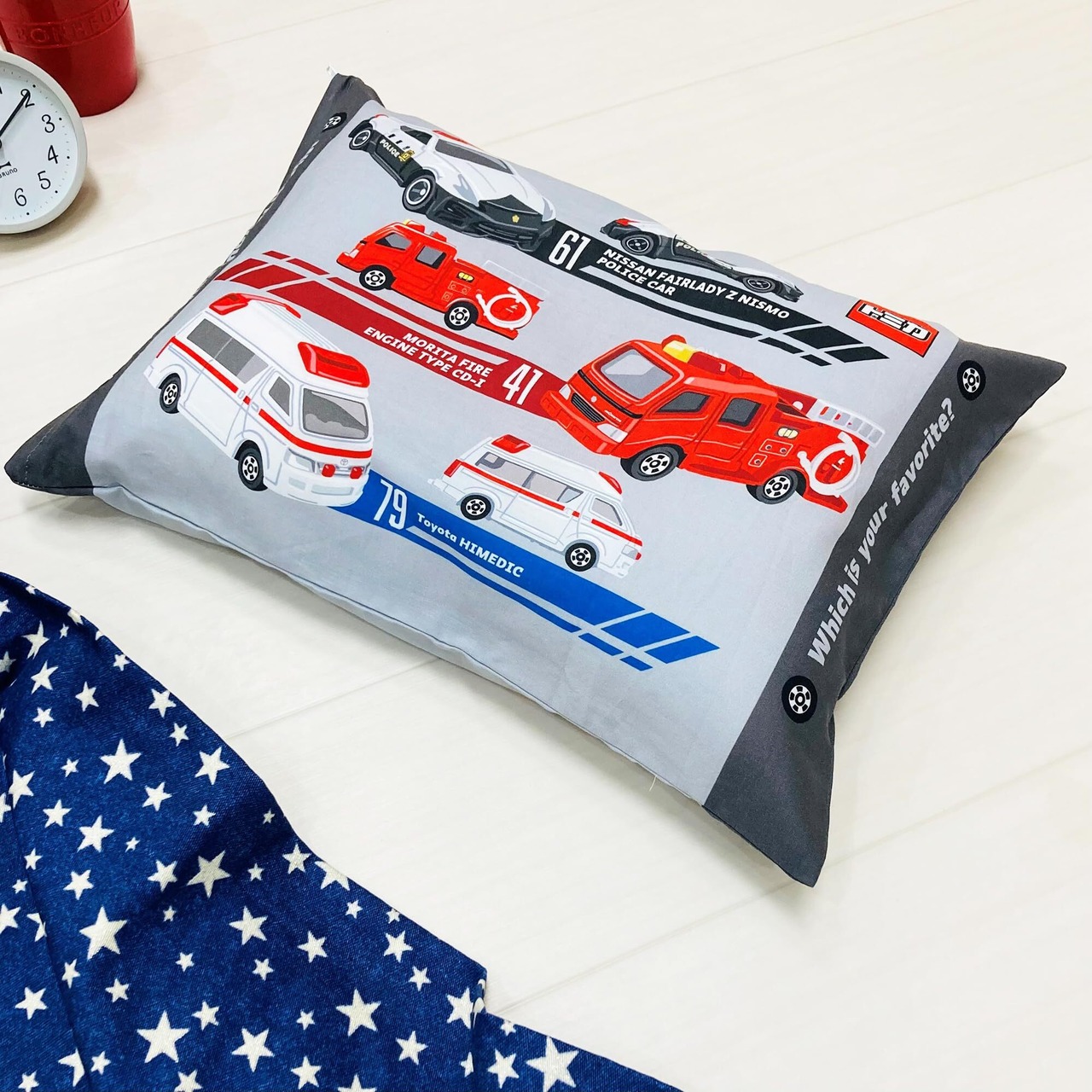 【新着商品】MORIPiLO トミカ 子供 枕カバー (パトカー 消防車 救急車 ジュニア枕カバー) ぬいぐるみ グッズ クッション 約40x30x10cm グレー 綿100 洗える 可愛い 低め 小さめ 柔らかめ tomica キャラクター まくらのモリシタ
