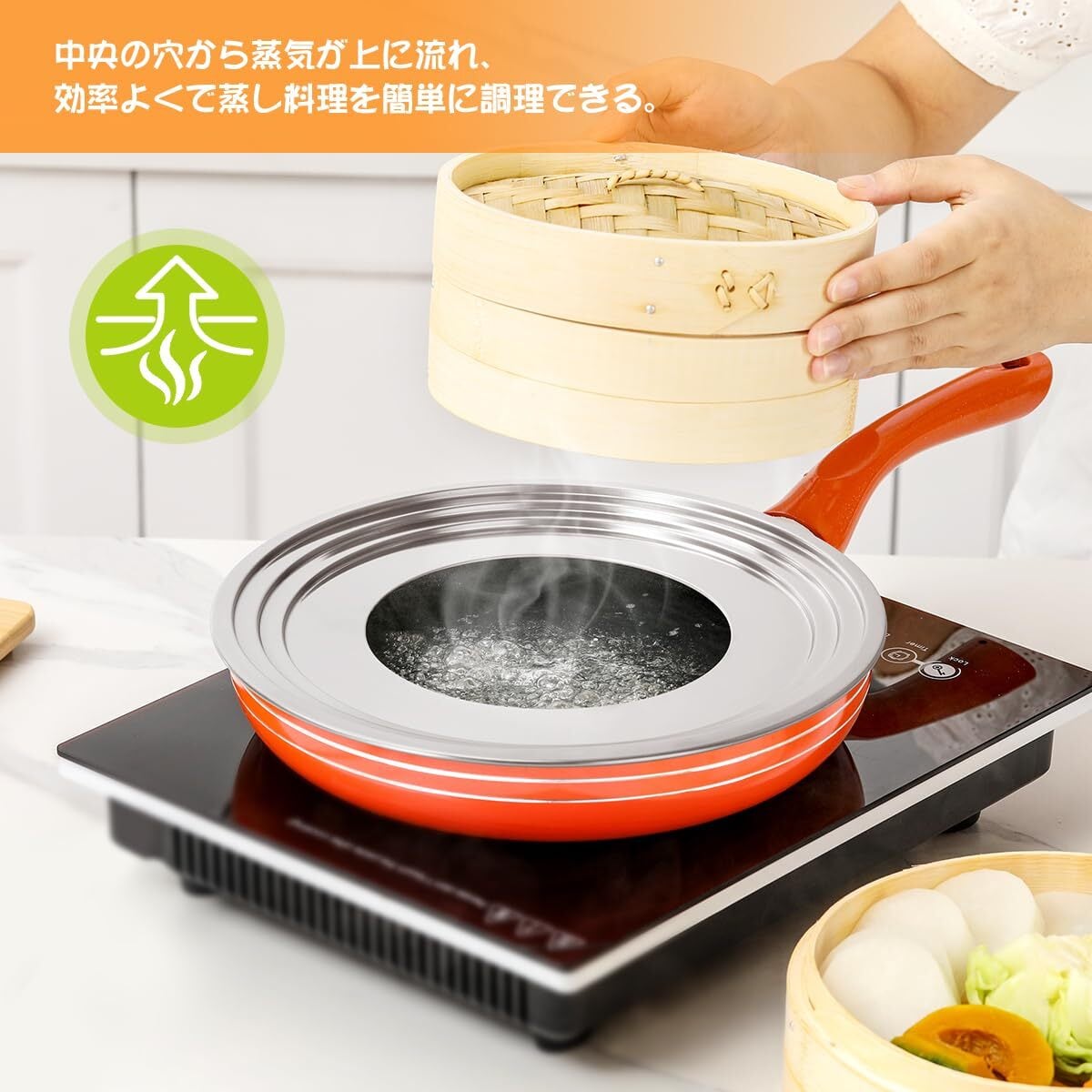 【15cm大内径】蒸し板の中の穴は直径15cm大きくなり、直径16~25cm(18cm 21cm 24cm含む)のセイロに対応します。蒸気がより完全かつ均一にせいろ内に流れ、美味しい蒸し料理が気軽にできます。(※21cm以上のせいろはうまく入らない場合がありますのでご注意ください)