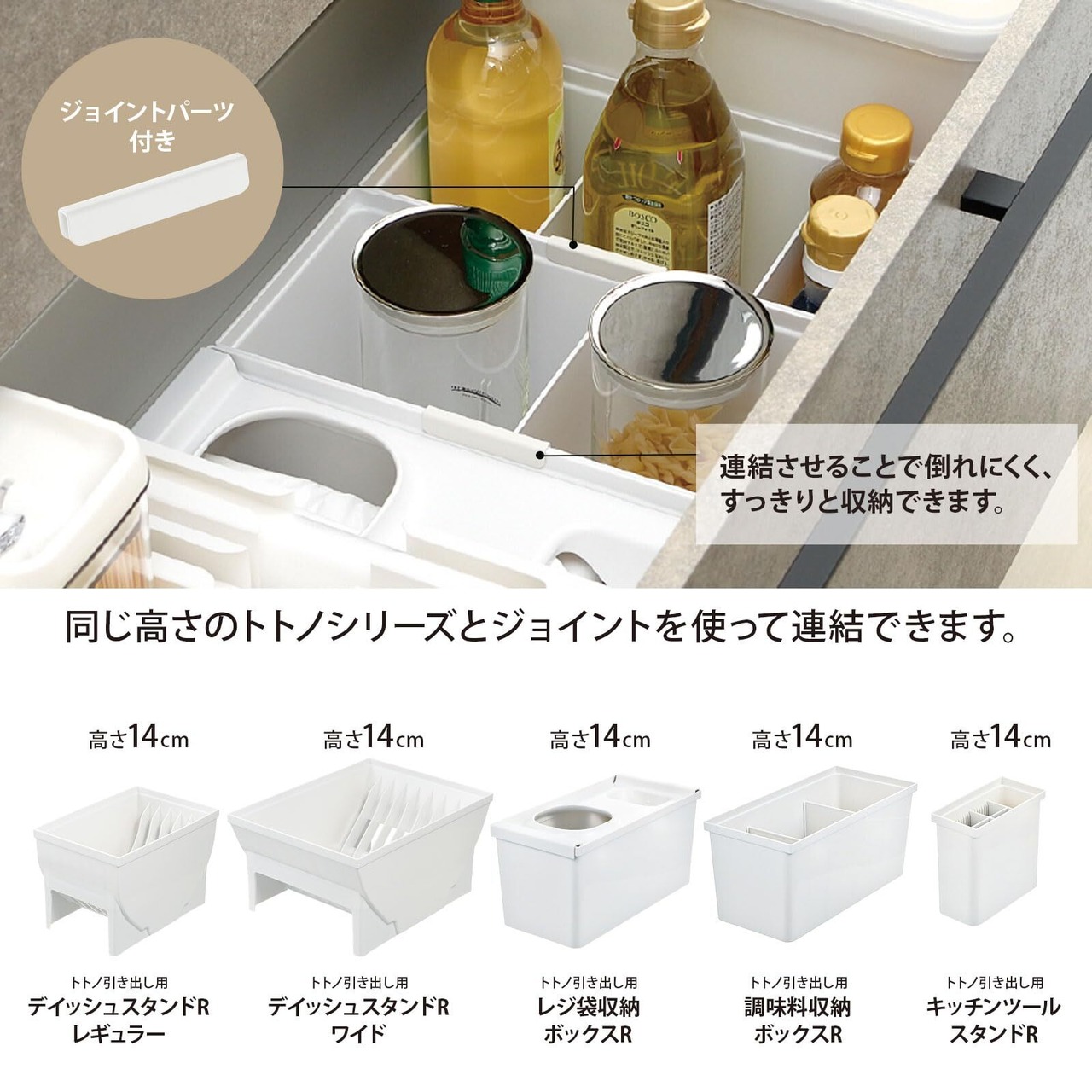 ●付属品のジョイントを使うと、同シリーズの同じ高さのディッシュスタンドレギュラー・ワイド、キッチンツールスタンド、レジ袋収納ボックス(別売り)と連結することができます。