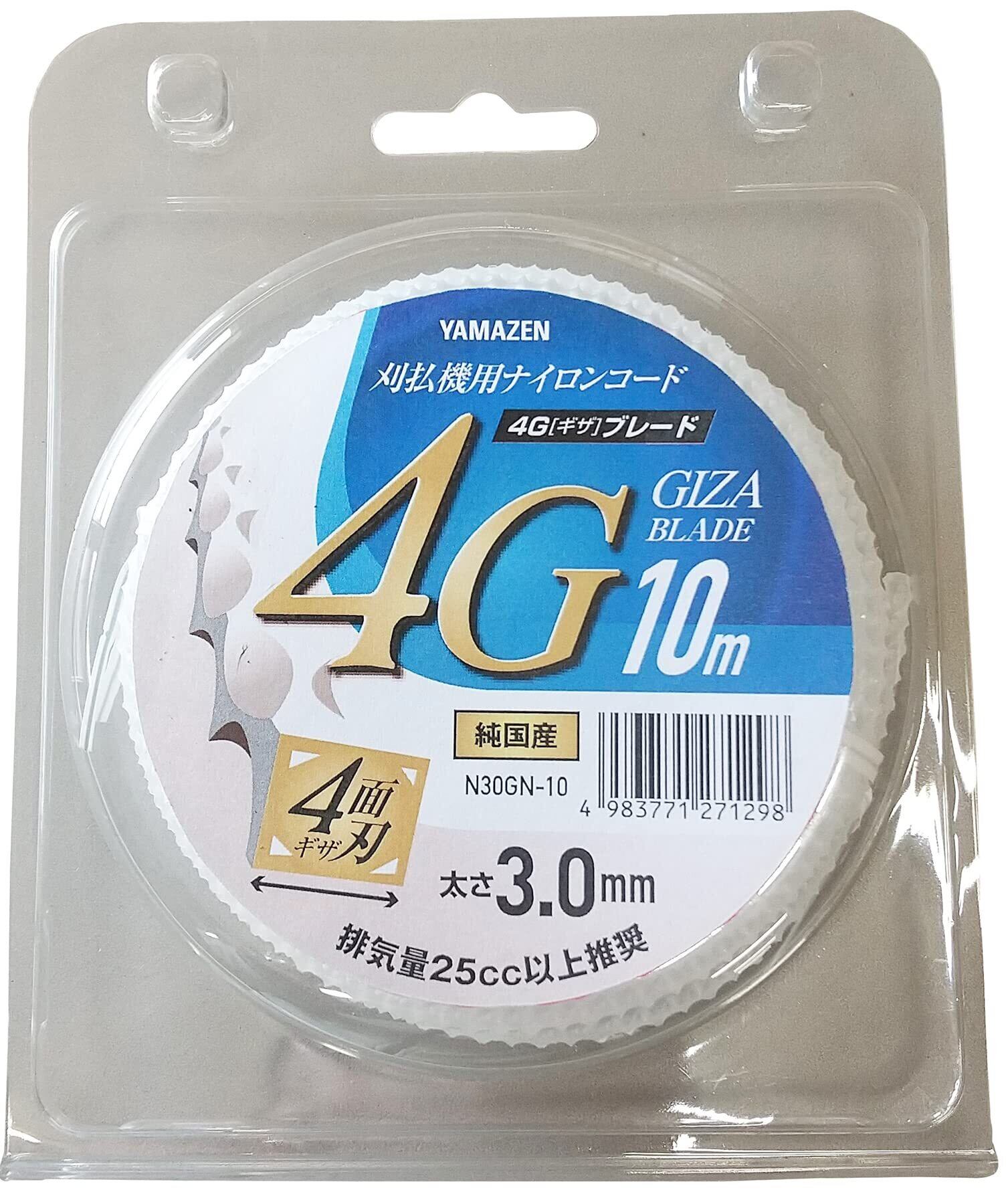山善(YAMAZEN) ナイロンコード 刈払機用 差込み式 (太さ3.0mm/コード10m) 4Gブレード 4面ギザ刃 ナイロンカッター 替え刃 草刈機 刈払機 石 タイル 雑草 除草 荒地 N30GN-10