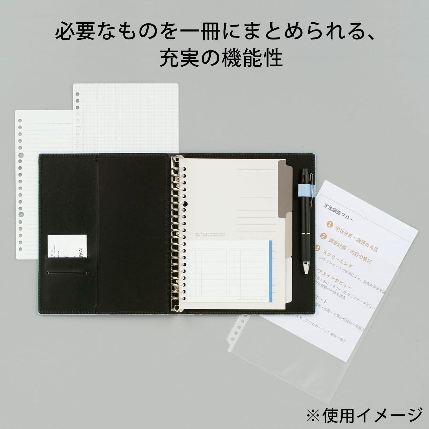 ノートも、メモも、書類も、一冊に全部まとめてスマートに管理できるバインダー