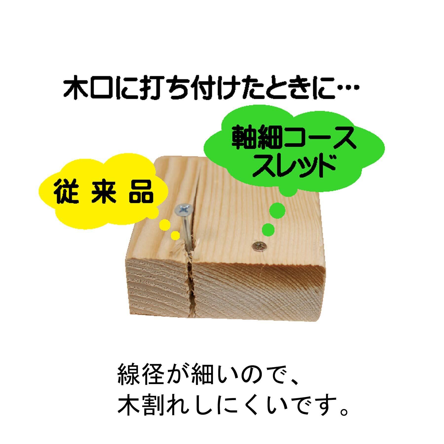 軸部が細く、足割加工を施しているため、木材に対して負担を軽減できます。