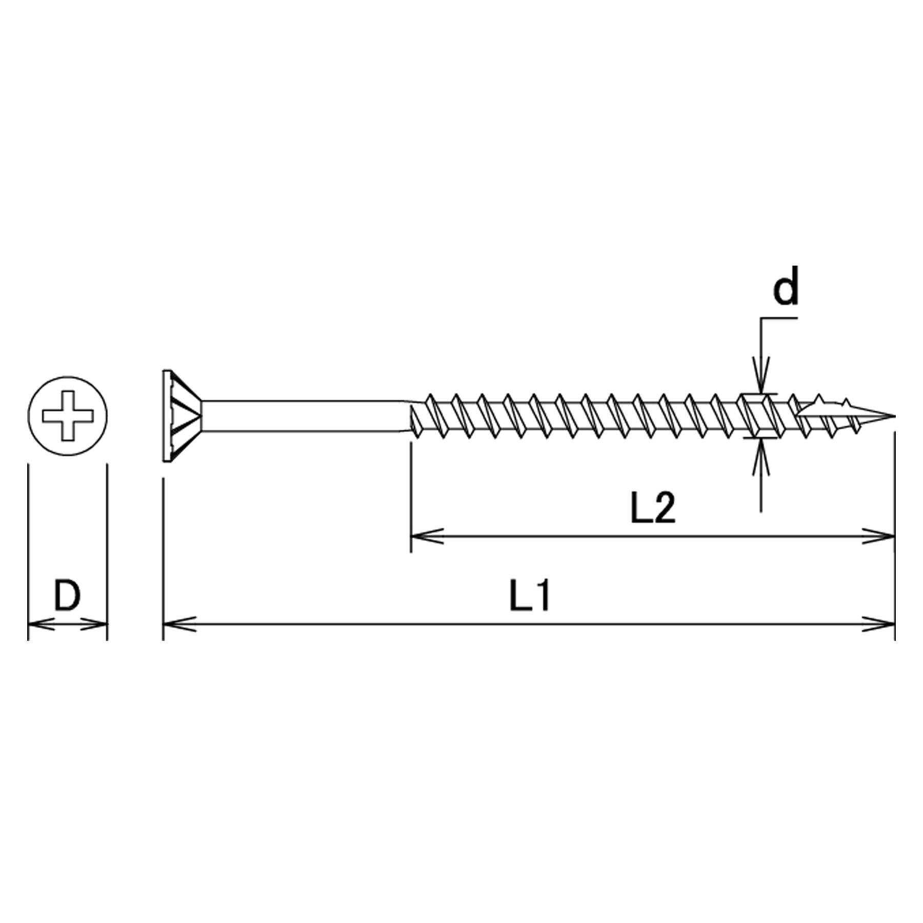 ねじ部(L2):35mm。頭径(D):6mm。ビット:十字穴No.2。