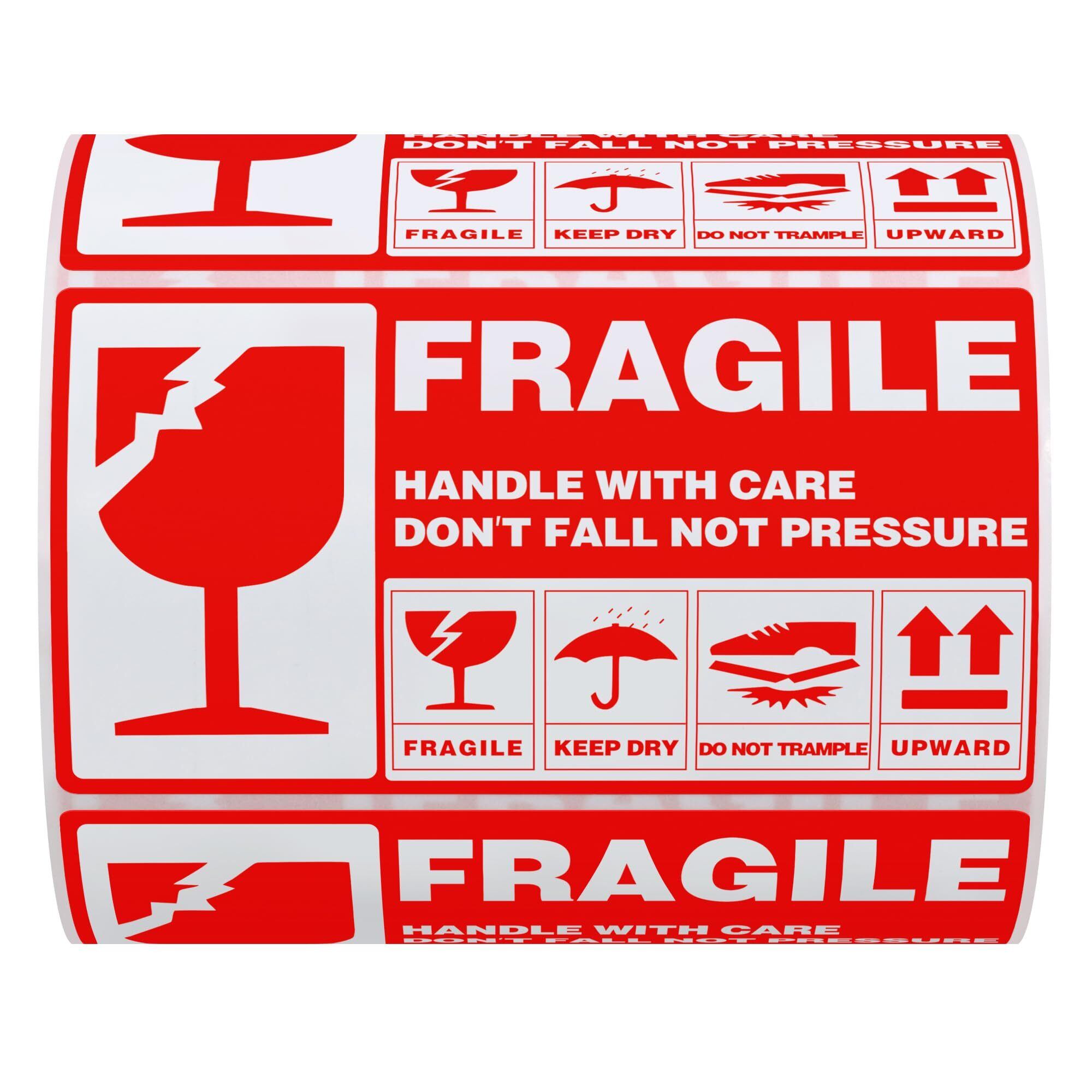 90 x 50 mm fragile 割れ物注意 シール、200枚/ロール。取り扱いに注意しなければならないすべての荷物やインテリアなどに使用でき、高価な商品や荷物の破損を防ぐことができます。小物やメールに貼るときにもぴったりです。国内でも海外でも使えます。簡単にはがして、物品に貼り付けることができて、脱落しにくい。広く使われている割れ物注意シールです