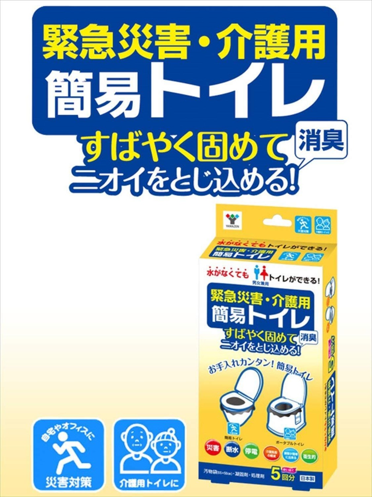 【新着商品】山善(YAMAZEN) 簡易トイレ 【日本製】 5回分 (凝固剤/汚物袋/処理袋) 携帯トイレ 災害用トイレ 防災 断水 介護 非常用 YKT-05