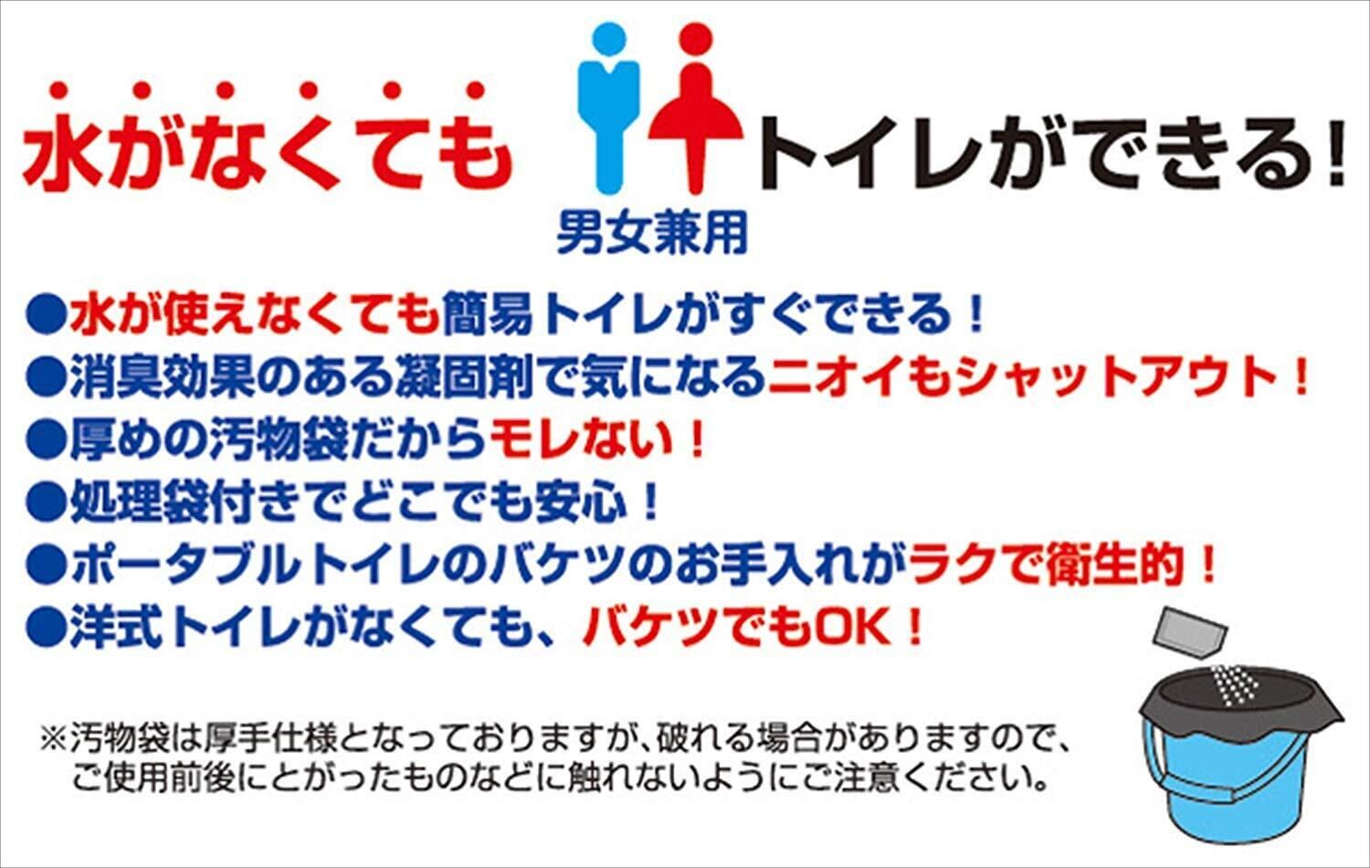 材質: 汚物袋、処理袋=ポリエチレン、凝固剤=高分子ポリマー・消臭剤・ウッドパウダー