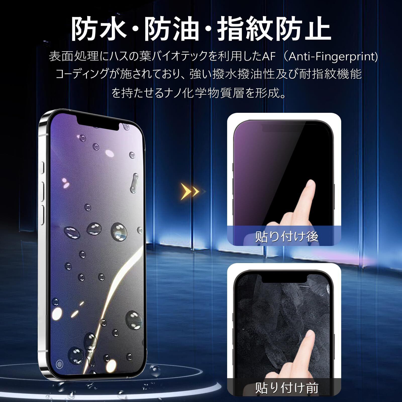 【アンチグレア・指紋防止・高感度タッチ】 アンチグレア(非光沢)タイプのさらさらで快適な操作感。光の反射を軽減し、より目に優しくちらつきを抑えます。同時に、いPhone13 フィルム には撥油コーティングが施されており、指紋が目立ちにくくなって、付着した汚れなどは簡単に拭きとれます。さらさら質感で指滑りもよく、長時間の作業、ゲームなどに最適。