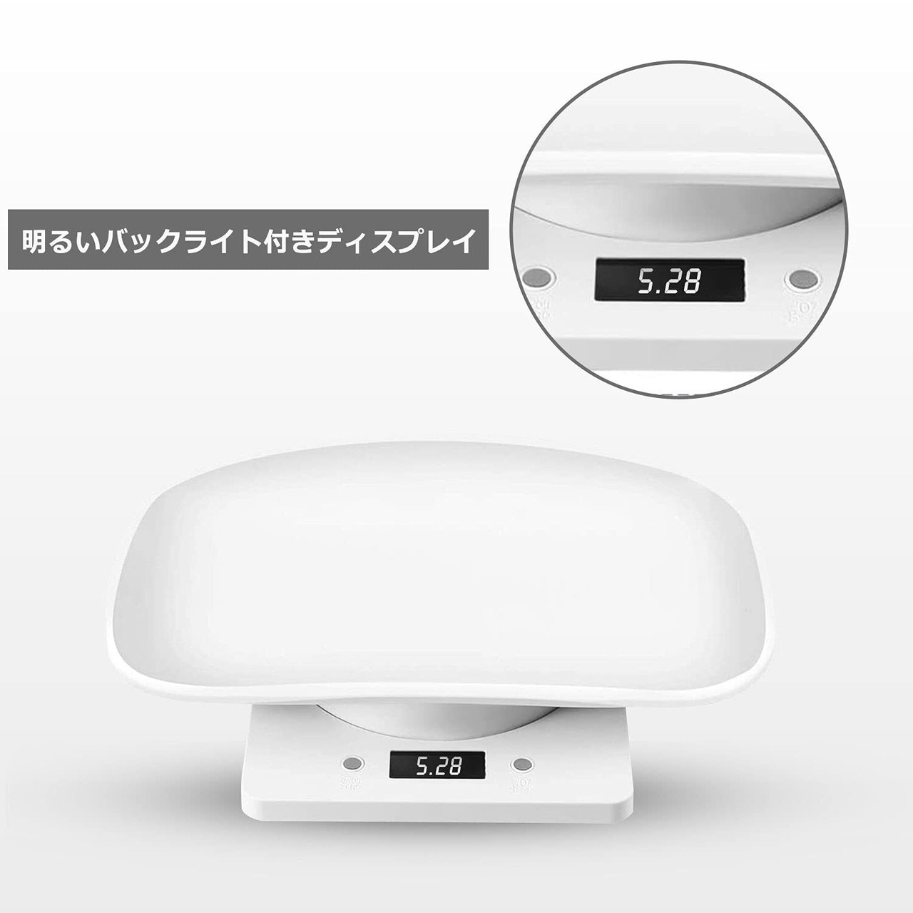 【電子はかり】読み取りやすい数字表示と明るいバックライト付きのディスプレイを使用しております。暗いところでも鮮明に読み取ることができます。