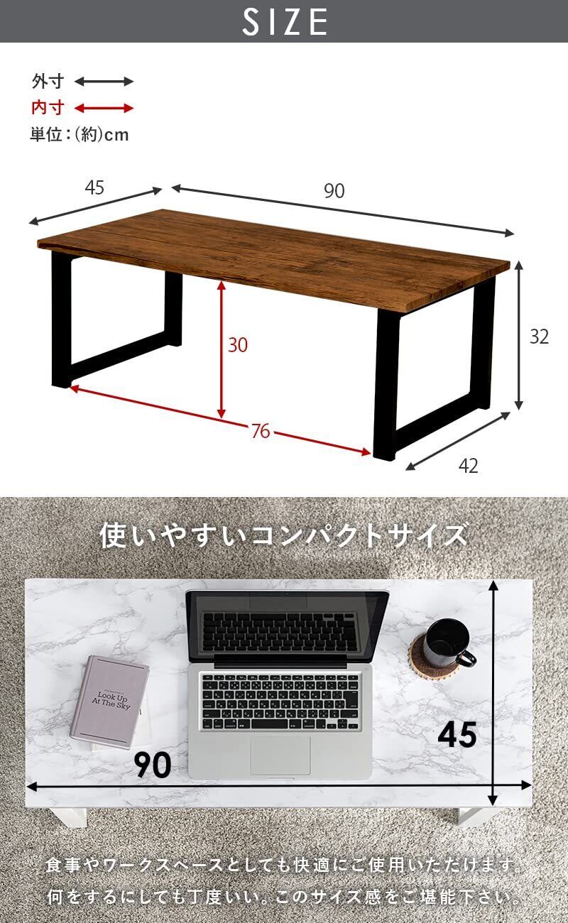 【数量限定】萩原(Hagihara) ローテーブル センターテーブル テーブル 机 【大理石調天板×スチール脚】 シック モダン リビング ソファテーブル 幅90 奥行45 高さ32 ホワイト 白 頑丈 LT-4394MWH