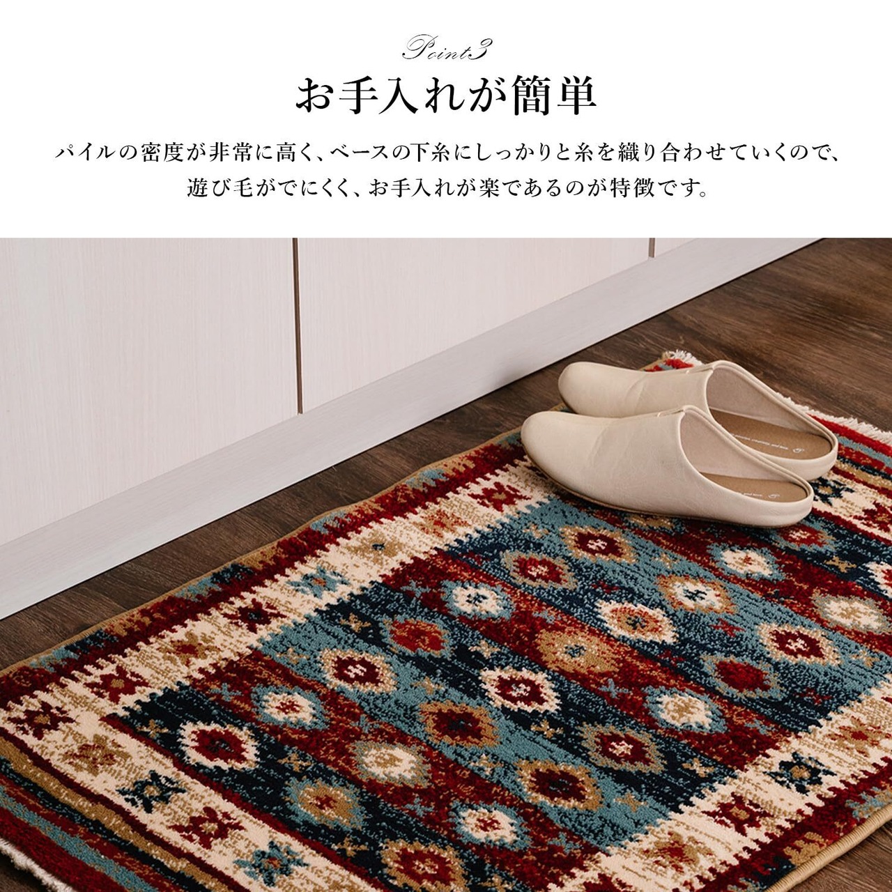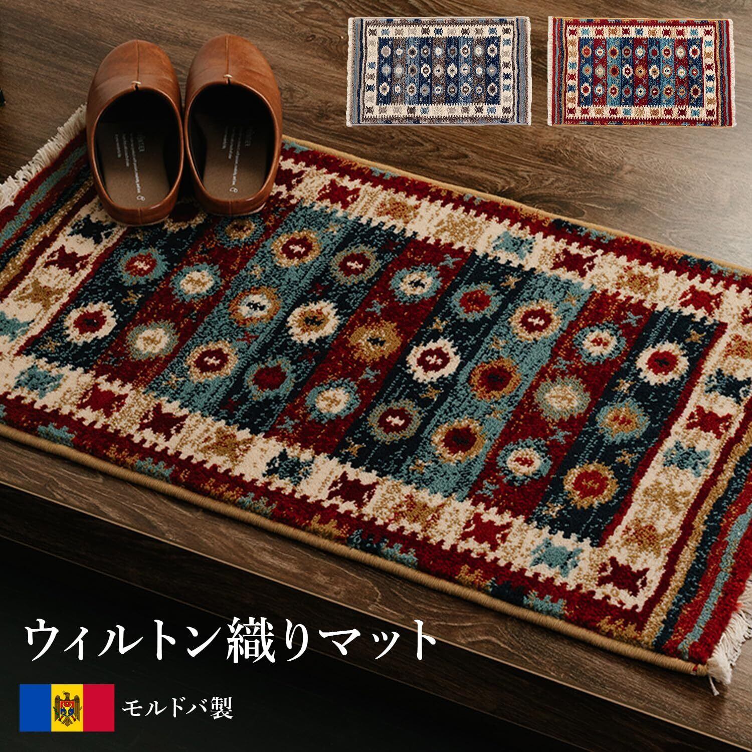 イケヒコ・コーポレーション イケヒコ 玄関 選べる マット ラグ ウィルトン モルドバ プルメリア 約70×120cm レッド キリム柄 フリンジ付き #2051479