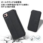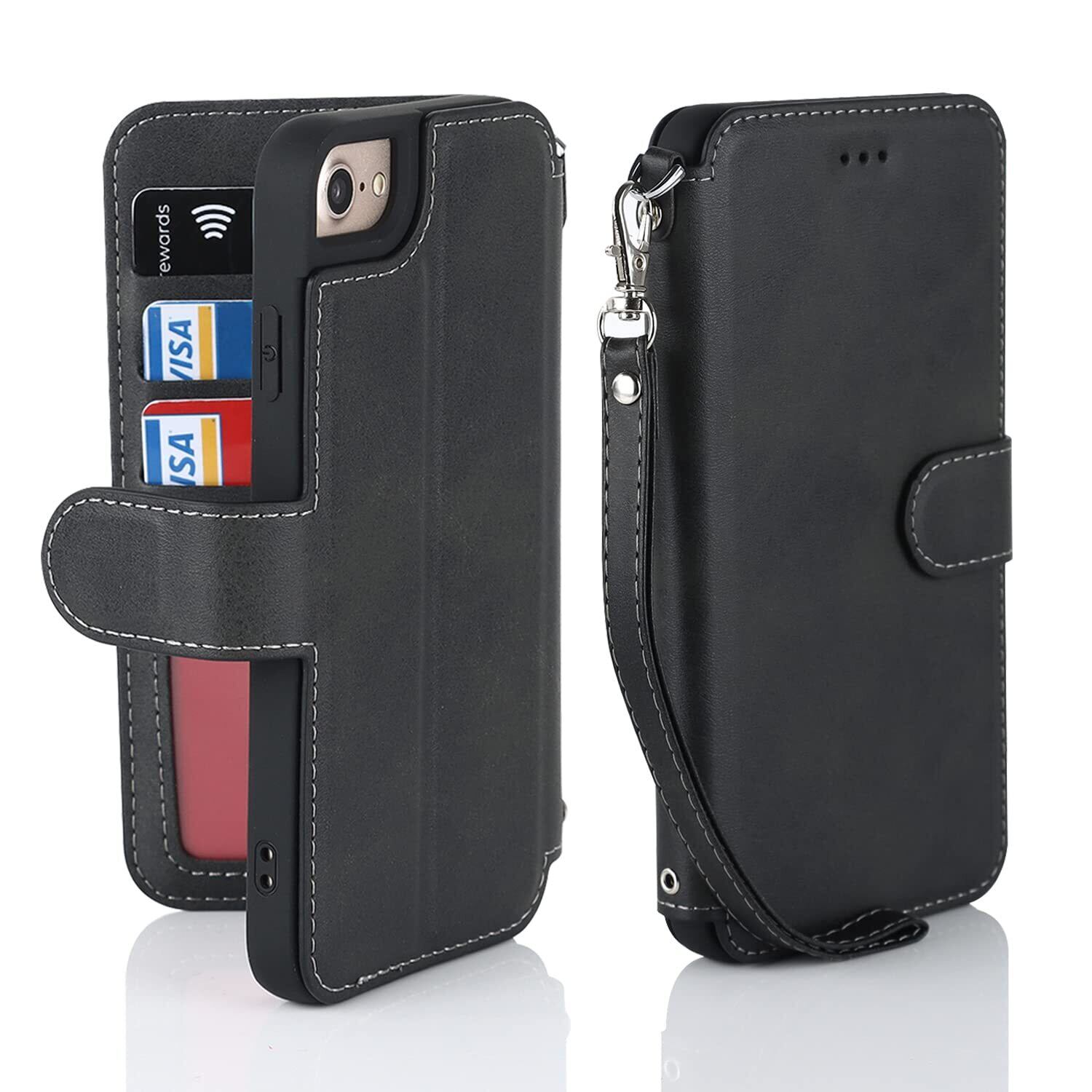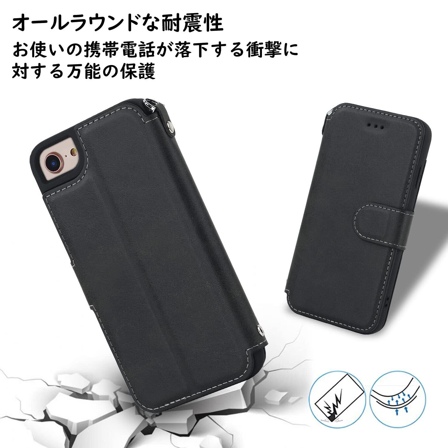 Havaya iPhone SE3 ケース iPhone SE2 ケース iphone8 ケース 手帳型 ストラップ 2022 2020 米軍MIL規格 軽薄 第3世代 第2世代 耐衝撃 レンズ保護(アイフォンSE3 /あいふぉんSE2/いphone8/アイホン7/アイフォン6/6s 4.7インチ対応)-ブラック