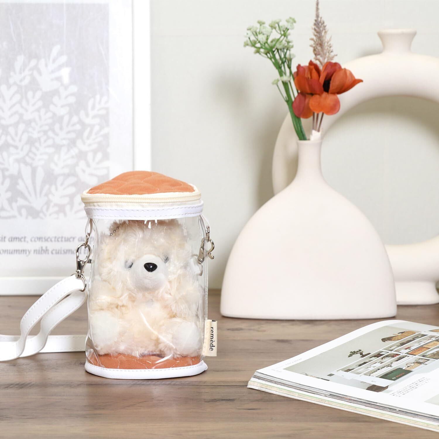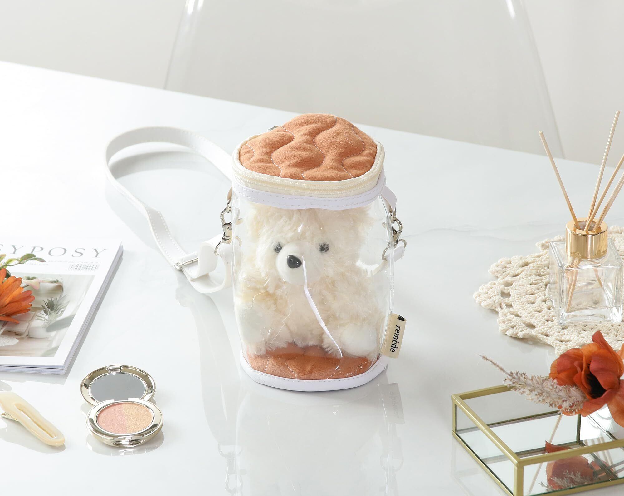 推しと一緒にお出かけできるショルダー掛け可能なぬいぐるみクリアバッグです。