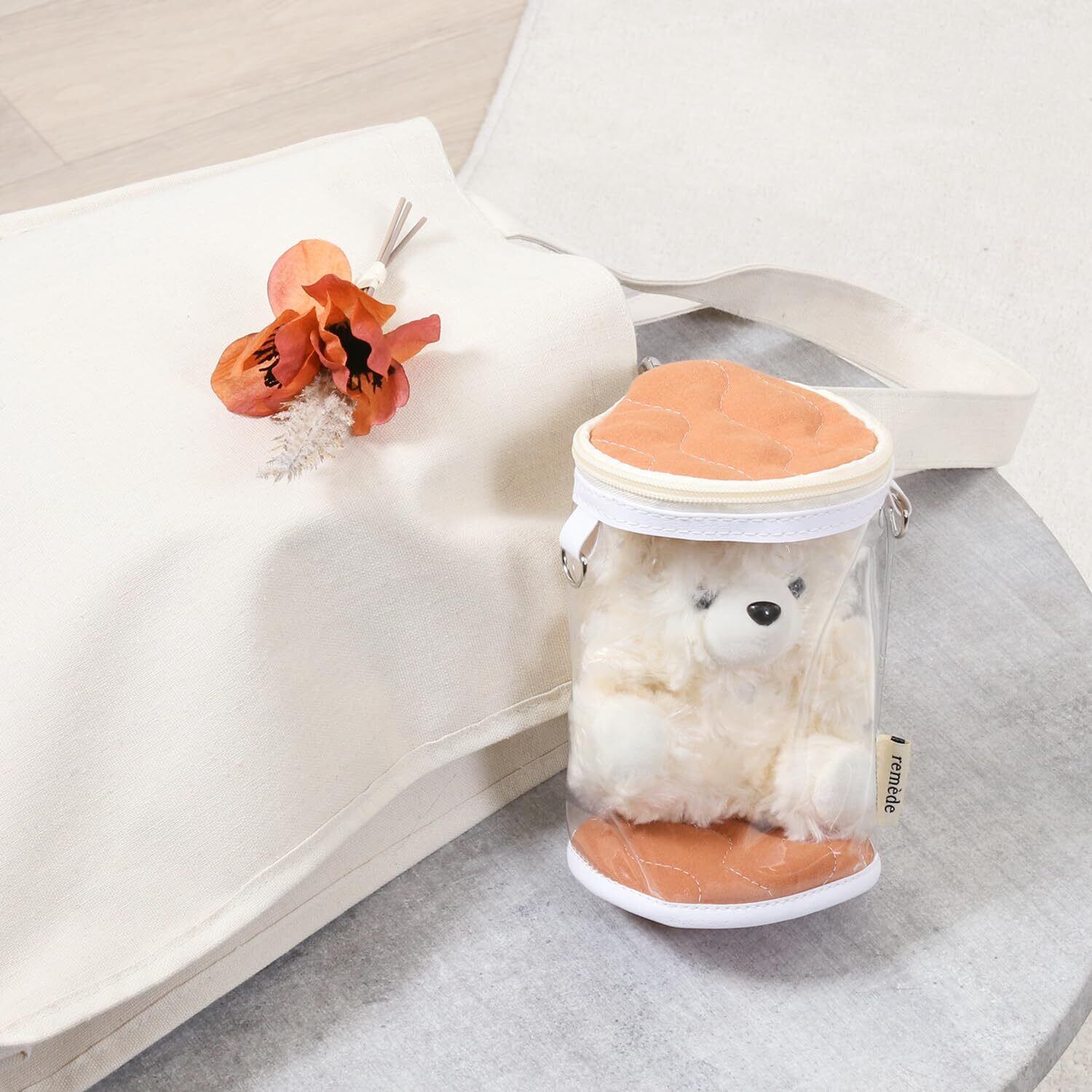 不二貿易 推し活グッズ ぬいぐるみバッグ 推しぬい 幅10.5×奥行9×高さ16.5cm オレンジ 推し活 収納 メンカラ 推しカラー ぬいぐるみ クリアバッグ グッズ remede ルメッド 53933 18760