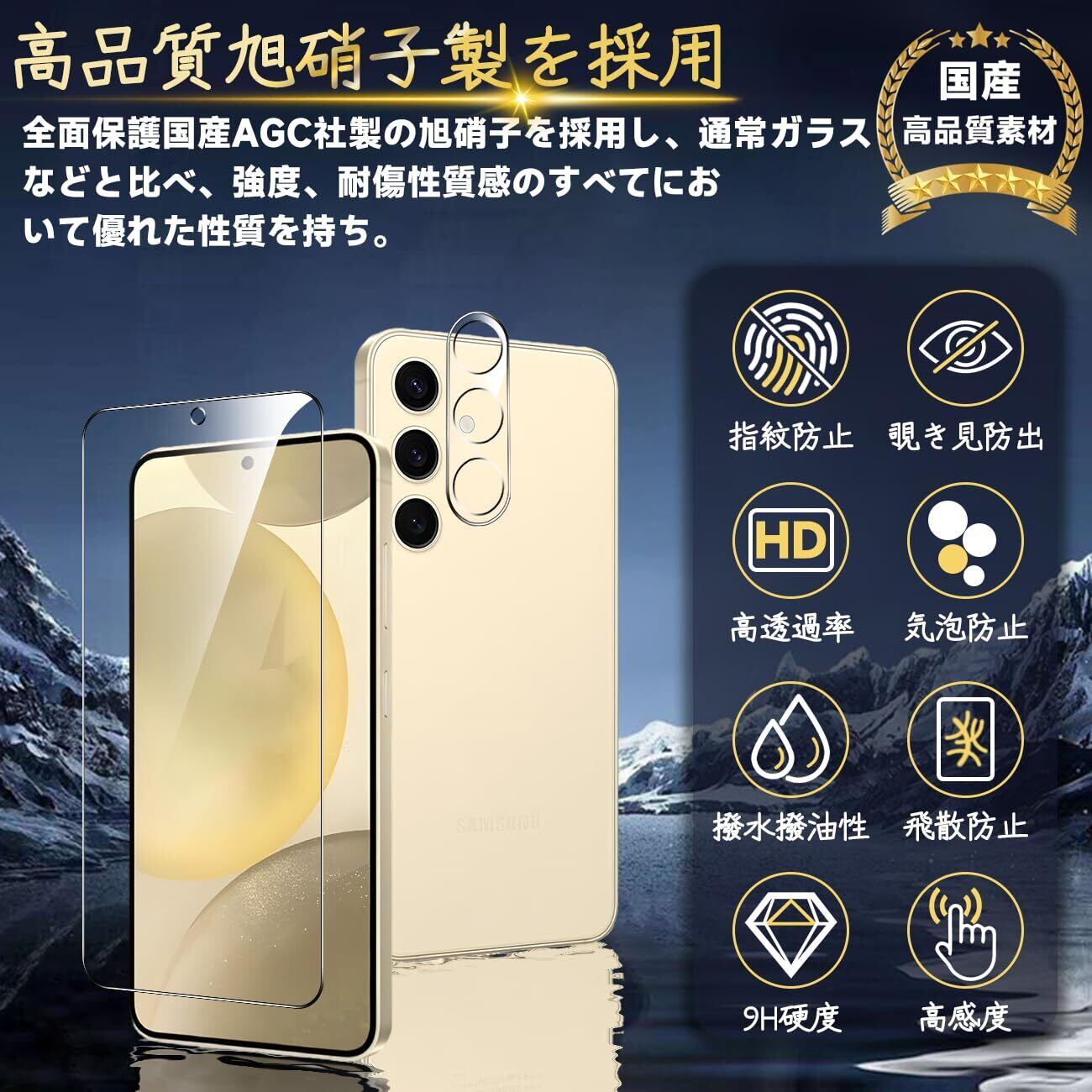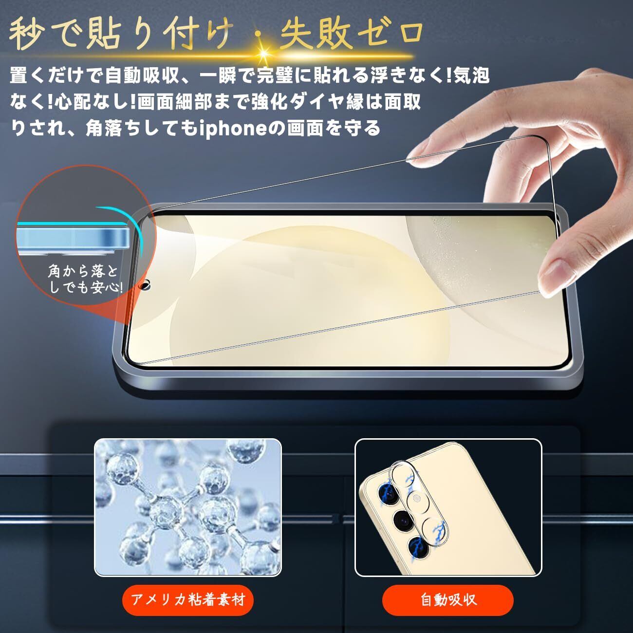 【数量限定】対応 Galaxy S24 5G フィルム ガイド枠付き GalaxyS24 5G 【2* 強化ガラス + 2* レンズ保護フィルム】Galaxy S24 5G SCG25 SC-51E SM-S921Qガラス 指紋ロック解除対応 ウィッシュ 高光沢 さらさら GalaxyS24 5G 保護 液晶 ケース カバー 日本旭硝子素材採用