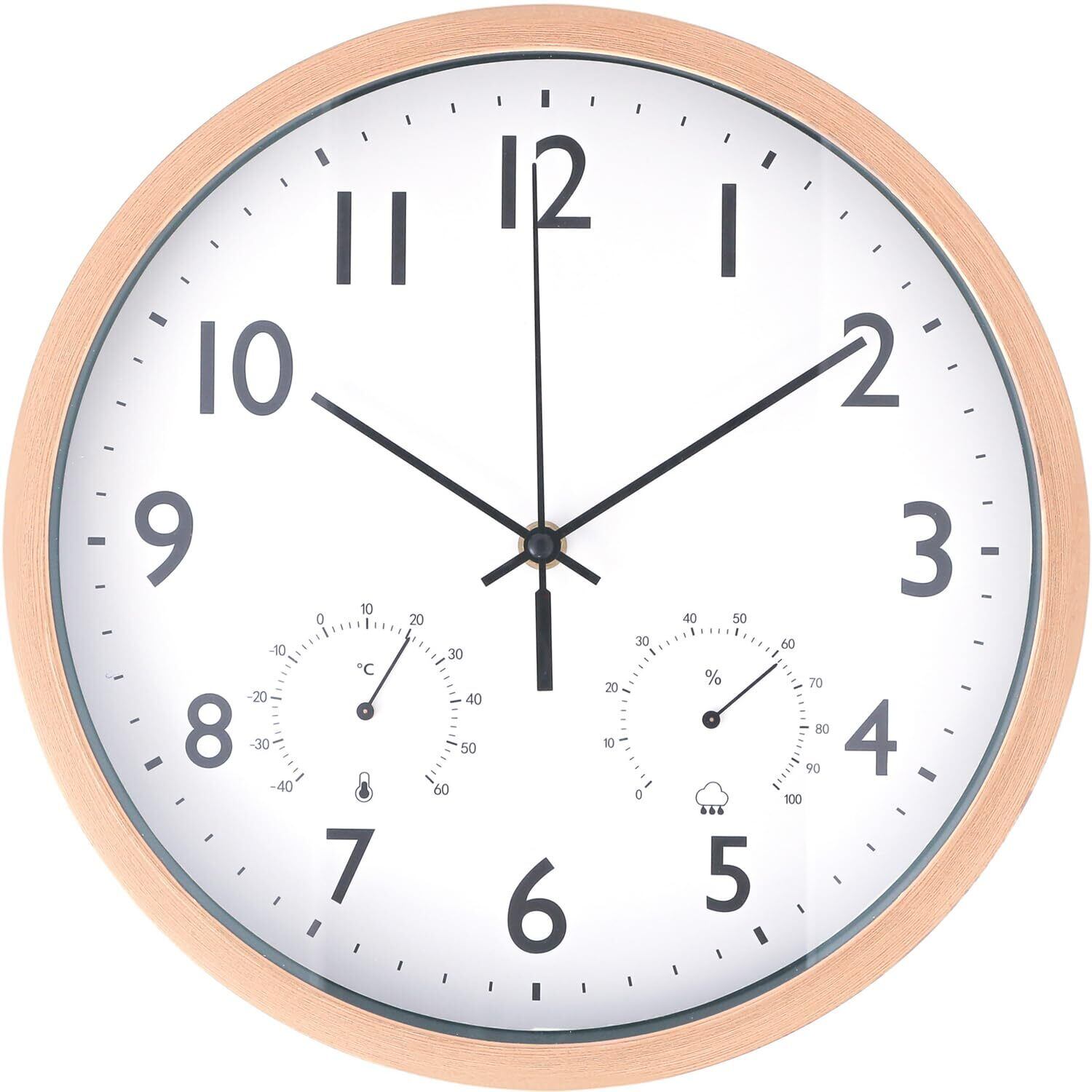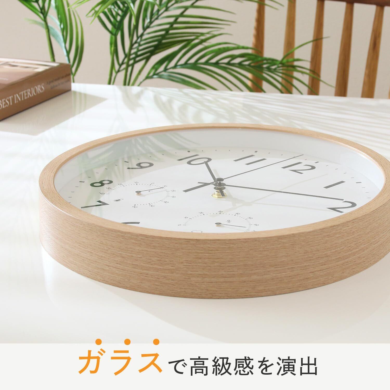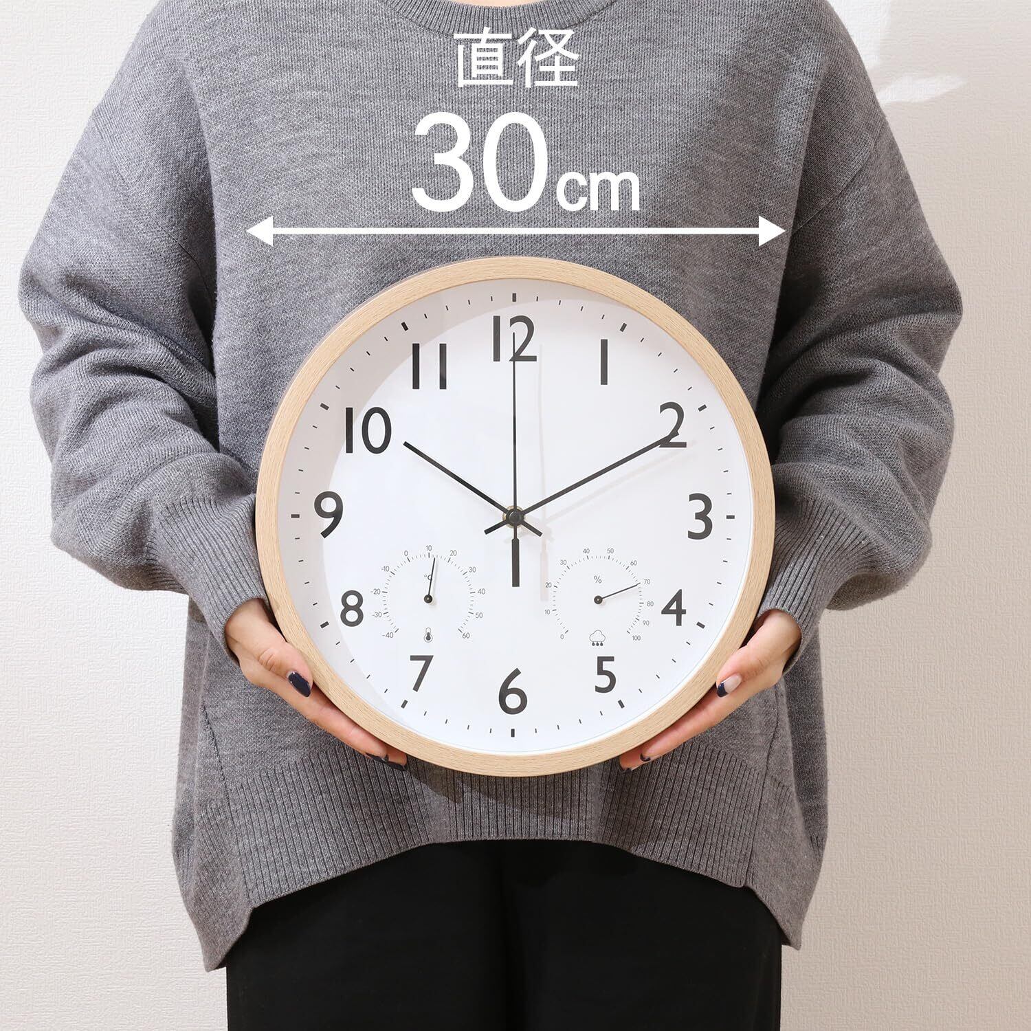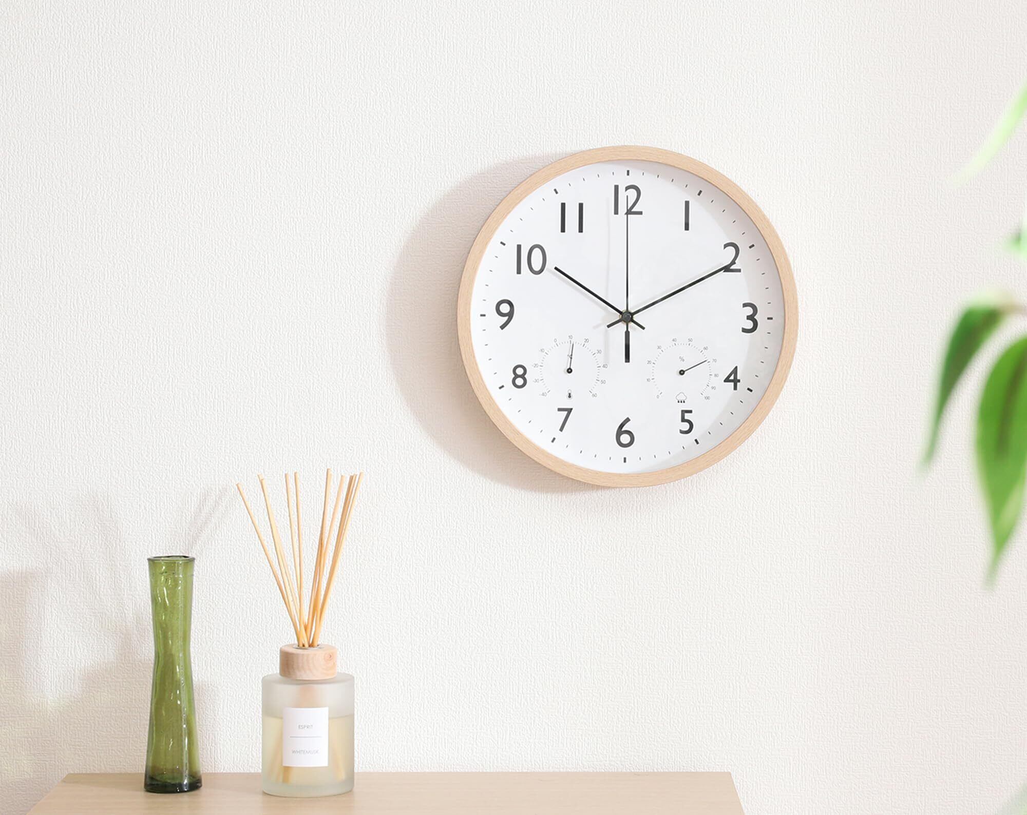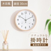 温湿度も分かる多機能なナチュラル掛け時計