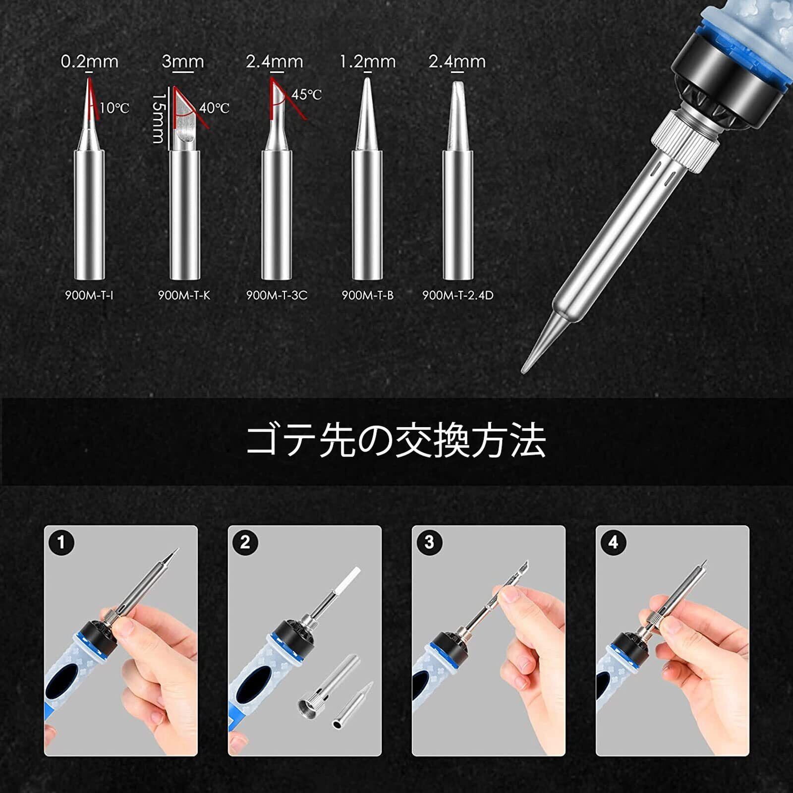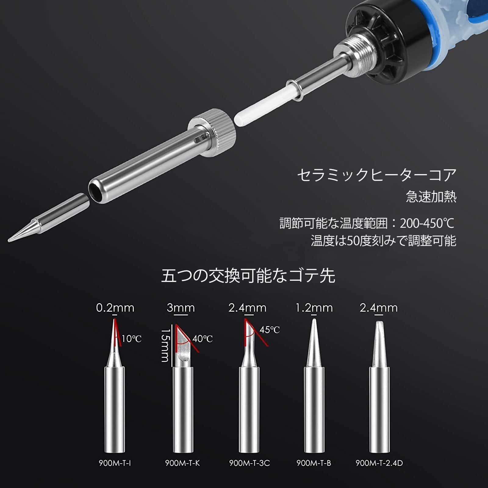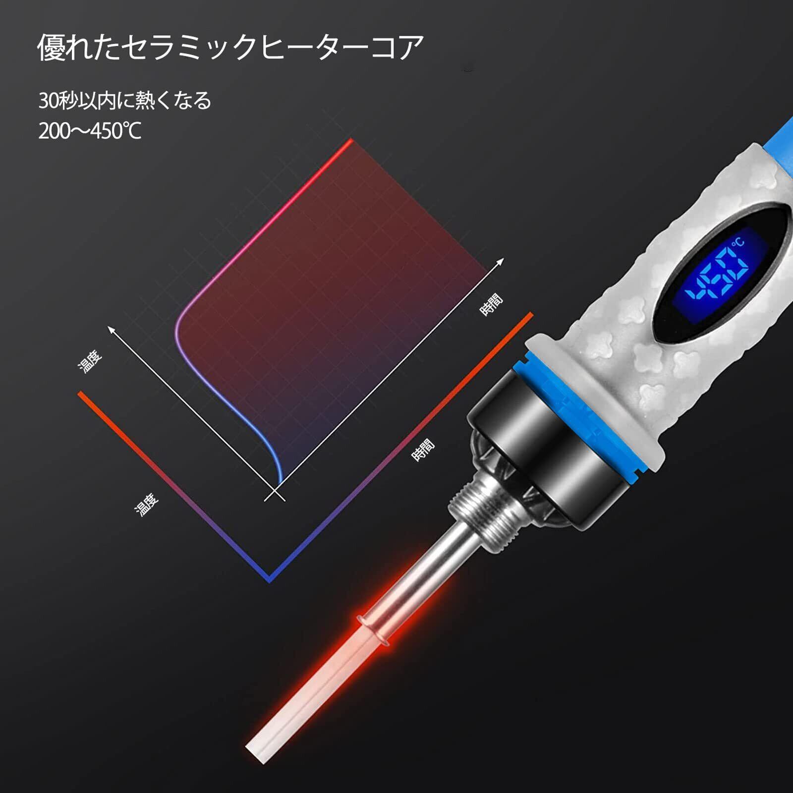 【液晶画面付きの優れたはんだごて】:温度調節ボタンと液晶温度表示により、200℃から450℃まで温度を調節でき、温度をはっきりと読み取ることができるため、過熱によって基板を壊す可能性が低くなり、作業もさらに簡単でプロフェッショナルになります。