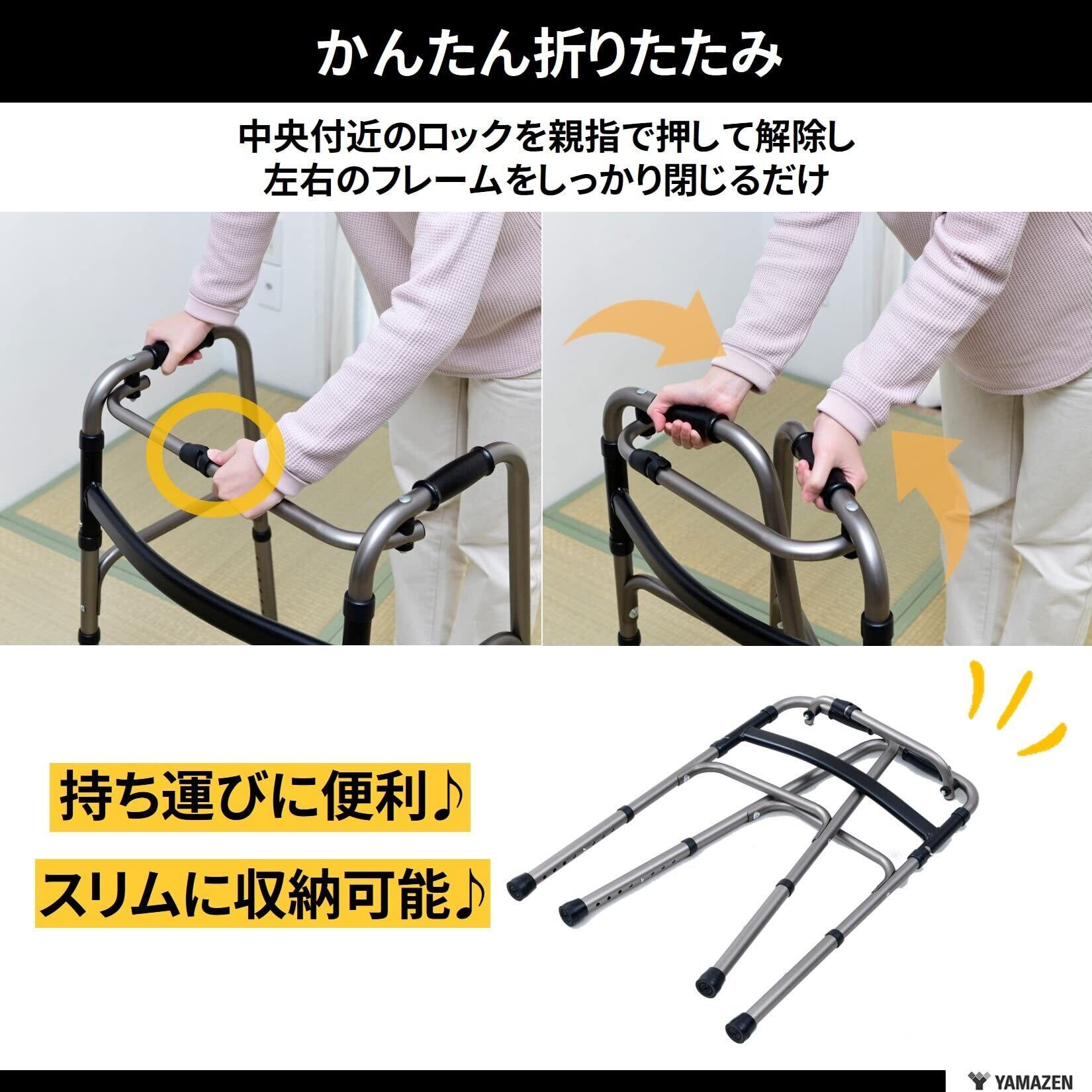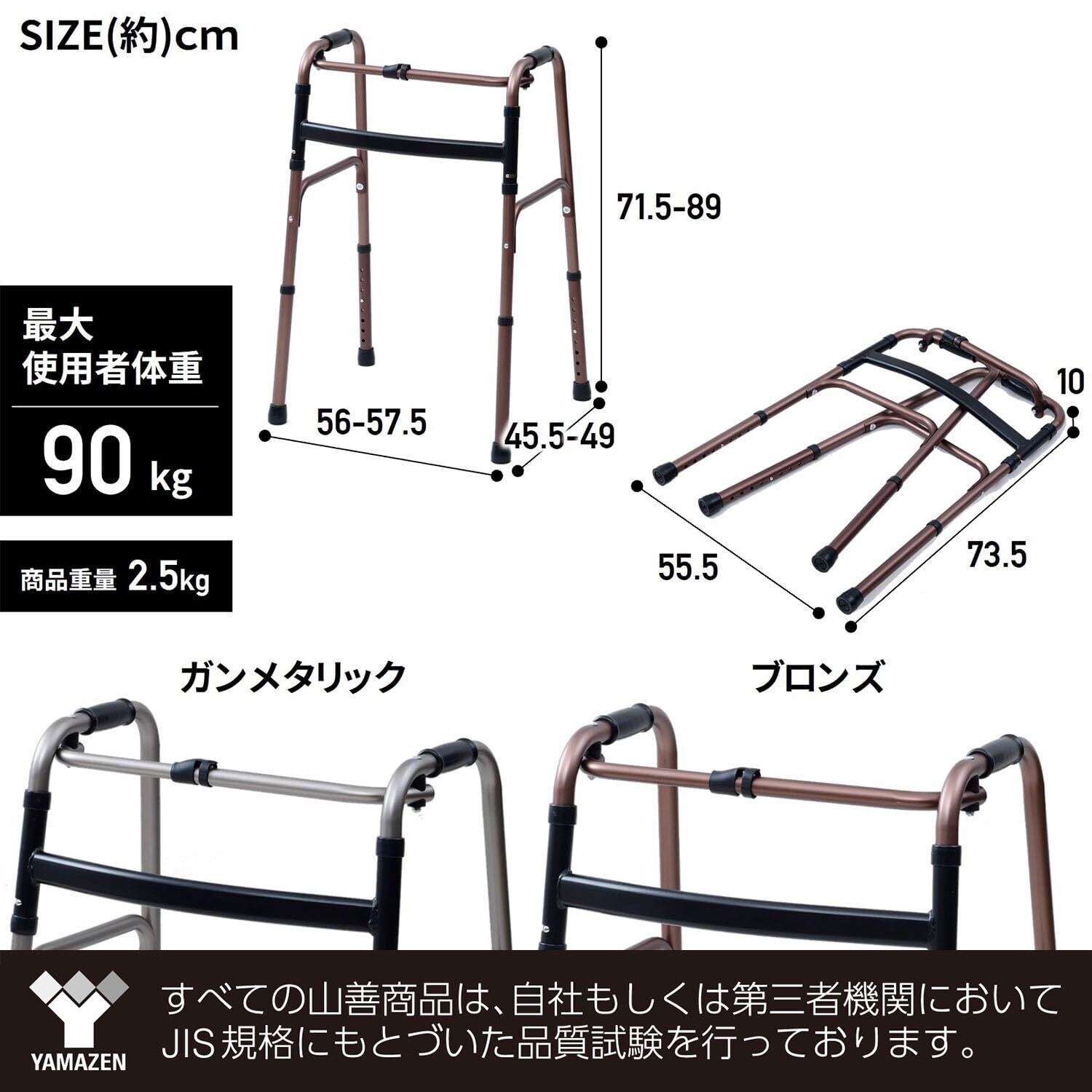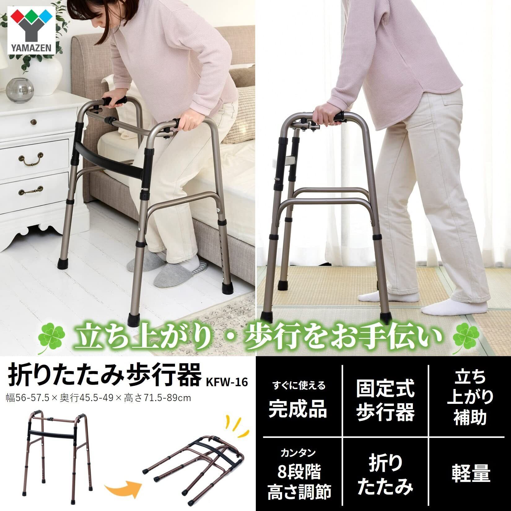 【新着商品】山善(YAMAZEN) 歩行器 立ち上がり補助 【完成品】 固定式歩行器 8段階高さ調節 折りたたみ 軽量 室内 杖 手すり 高齢者 ブロンズ KFW-16(BZ)
