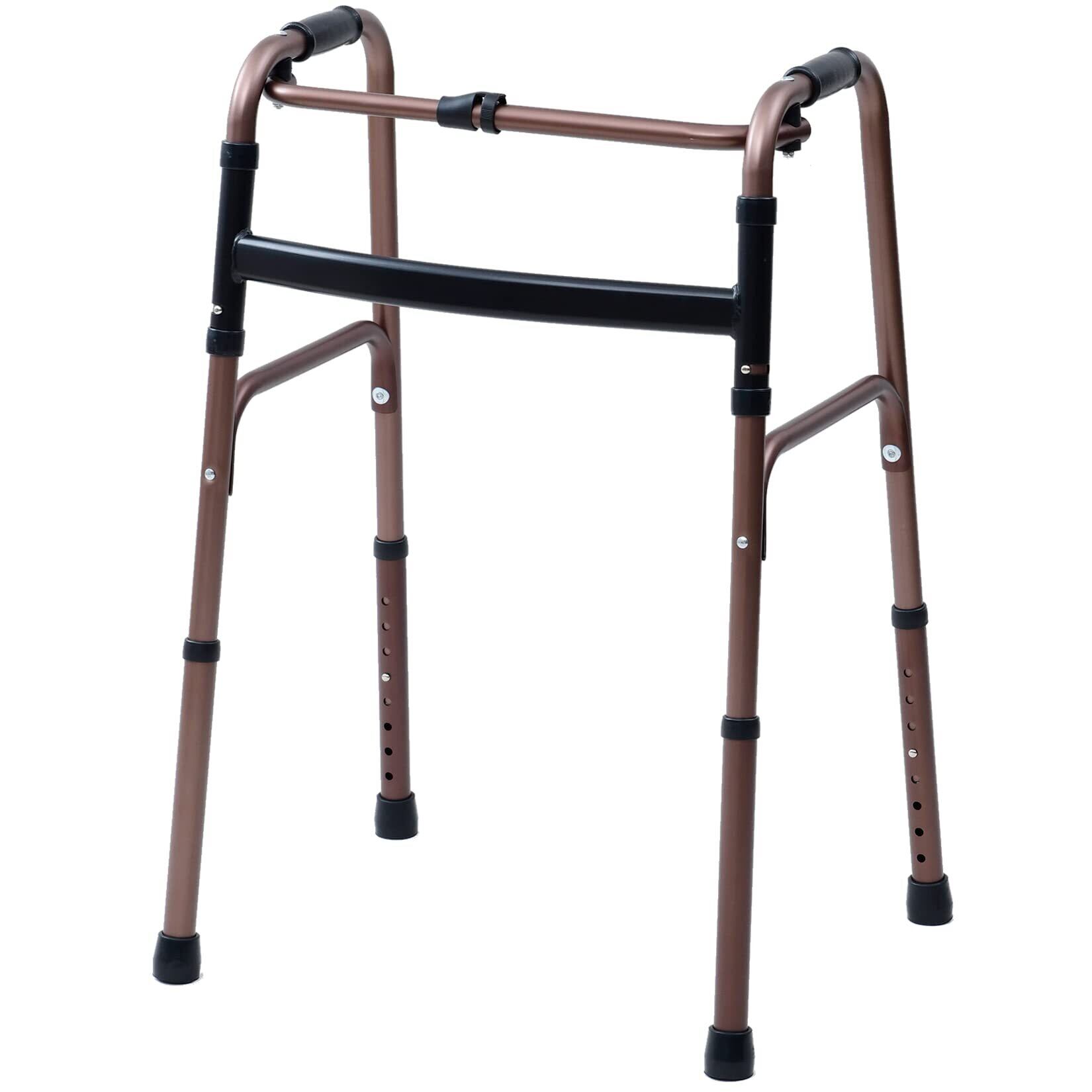 山善(YAMAZEN) 歩行器 立ち上がり補助 【完成品】 固定式歩行器 8段階高さ調節 折りたたみ 軽量 室内 杖 手すり 高齢者 ブロンズ KFW-16(BZ)