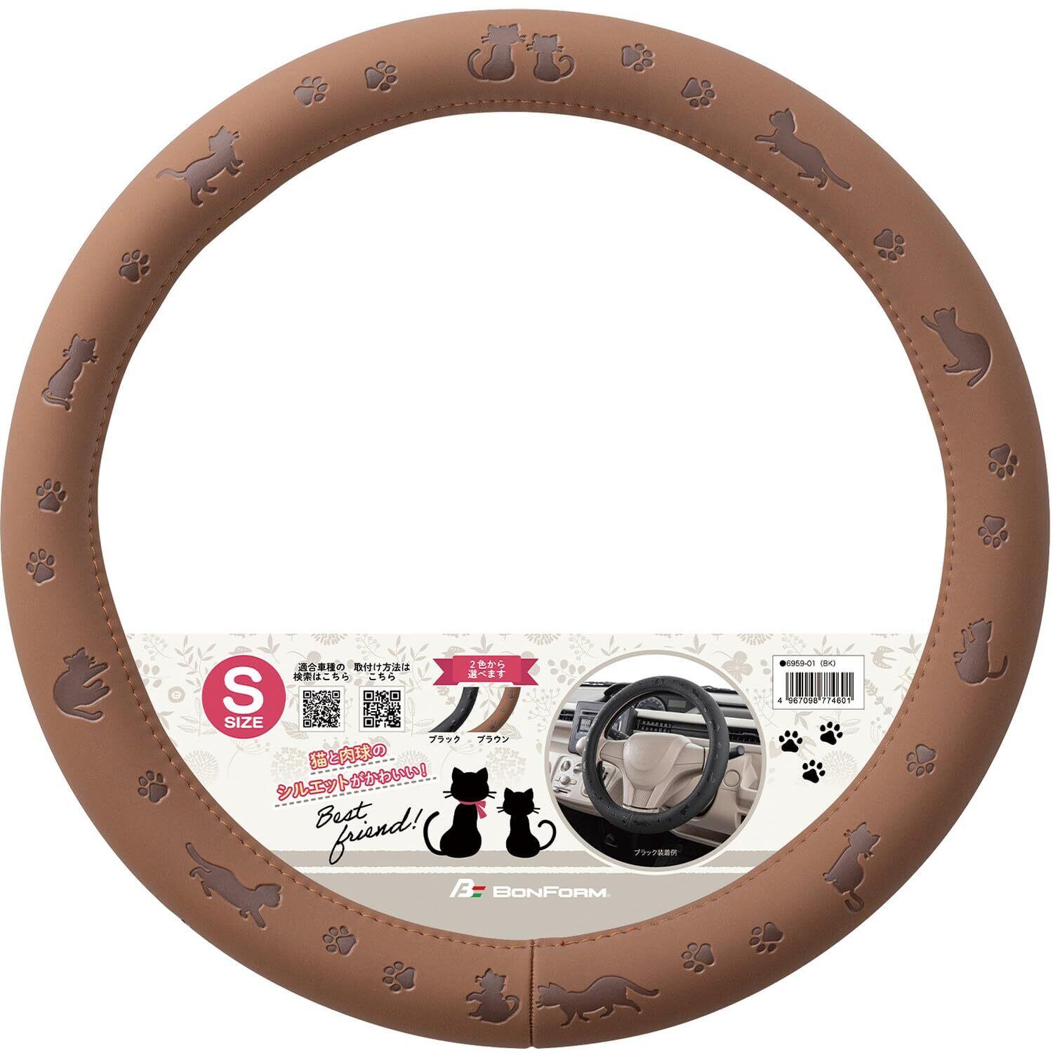 【数量限定】ボンフォーム(BONFORM) ハンドルカバー キャットツインズ S36.5-37.9cm サイズ:370×370×45mm ブラウン 6959-01BR