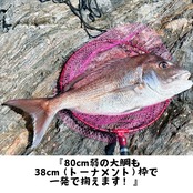 〇【パフォーマンス】……「枠径」の2倍近いサイズを持つ70cm級のコロダイをしっかりと掬い上げることが可能。小さなタモでも大きな魚体を掬える強靭なフレームと網。